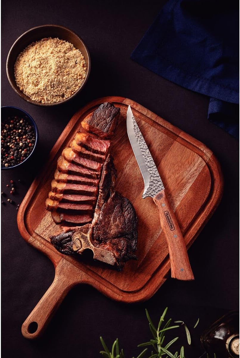 - Messer aus rostfreiem Edelstahl AISI 420 mit Hammerschlag Klinge