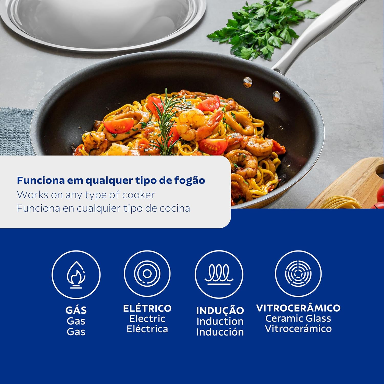 - Wok aus rostfreiem Edelstahl mit Starflon Premium Antihaftbeschichtung
