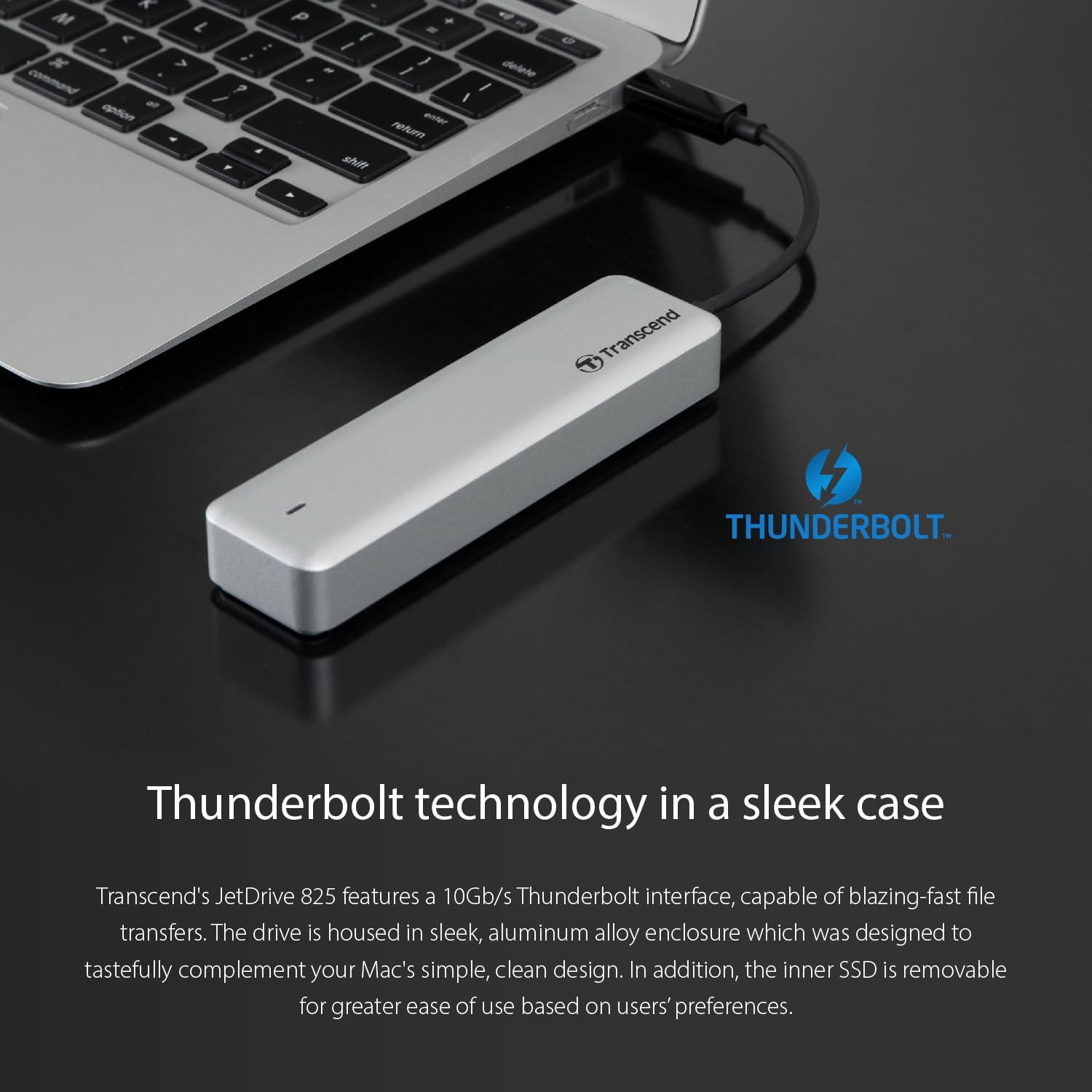 - JetDrive 825: Kombiniert JetDrive 820 mit einem Thunderbolt-Gehäuse (mit 10Gb/s Thunderbolt-Schnittstelle für blitzschnelle Dateiübertragungen)