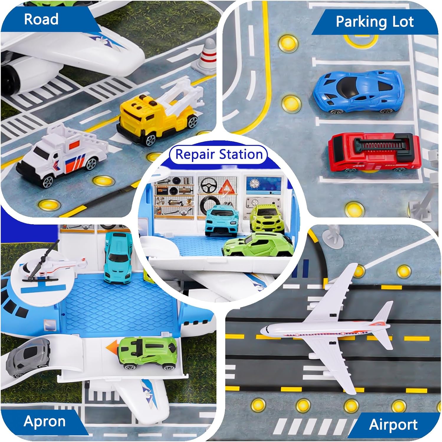 - Multi-Szenen-Simulation: Ausgestattet mit einer 80 x 55 cm grossen Spielmatte bildet es den realen Flughafenplan mit Rollfeldern, Parkplätzen, Mini-Rasenflächen und Strassensystemen perfekt nach. Kinder können die Start- und Landerouten der Flugzeuge