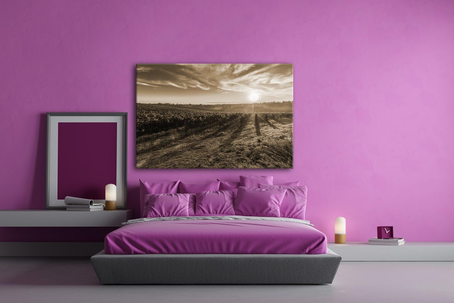 Traubenfeld in der Toskana Format: 60x40 Effekt: Sepia als Leinwandbild, Motiv fertig gerahmt auf Ec