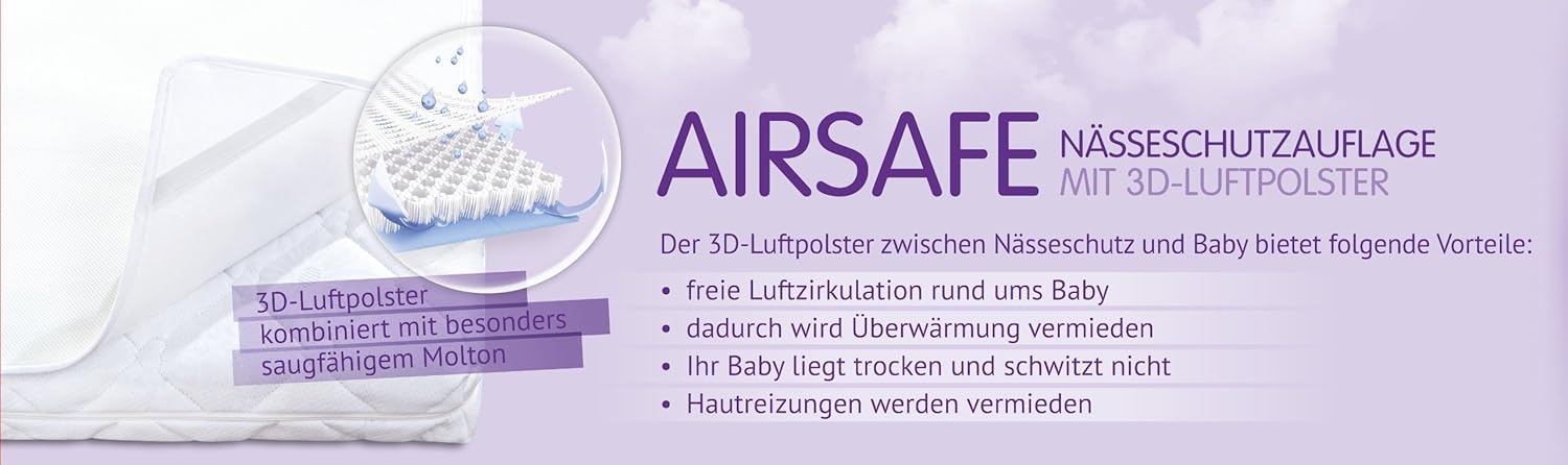 • Schützt die Matratze sicher vor Nässe und verbessert das Klima im Babybett.
