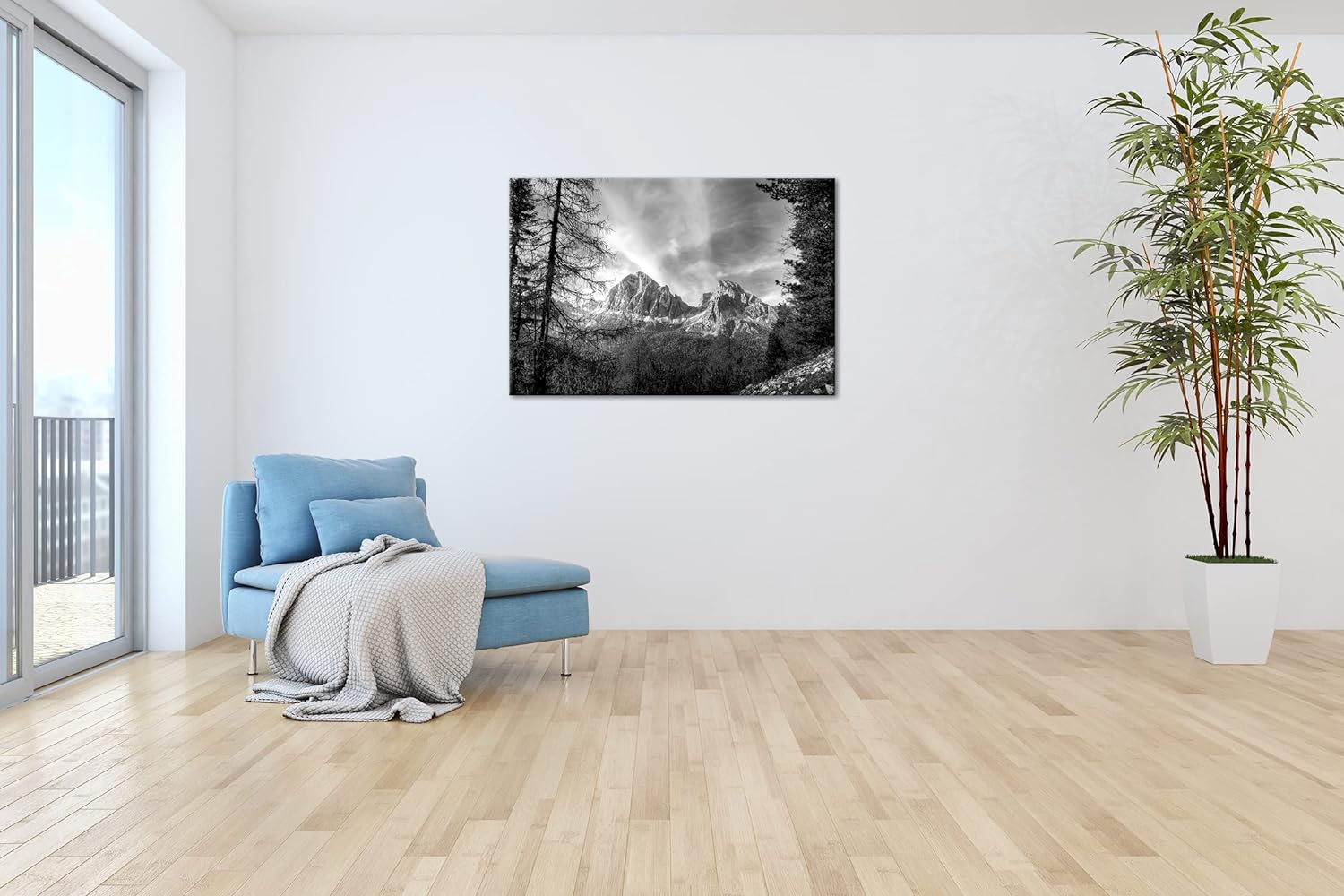 Traumhafte Berglandschaft der Dolomiten Format: 60x40 als Leinwand, Effekt: Schwarz&Weiss, Motiv fer