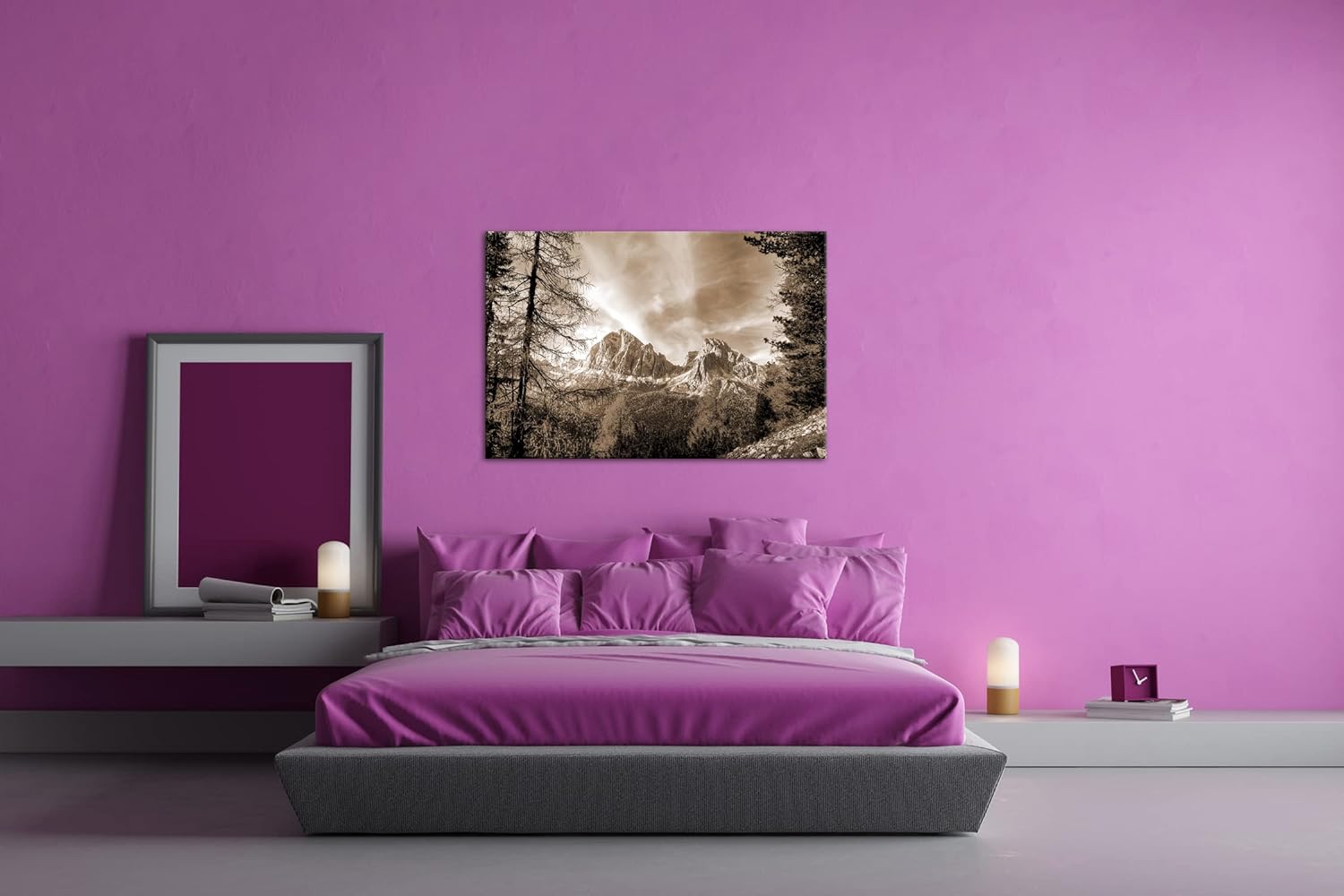 Traumhafte Berglandschaft der Dolomiten Format: 60x40 als Leinwand, Effekt: Sepia, Motiv fertig gera
