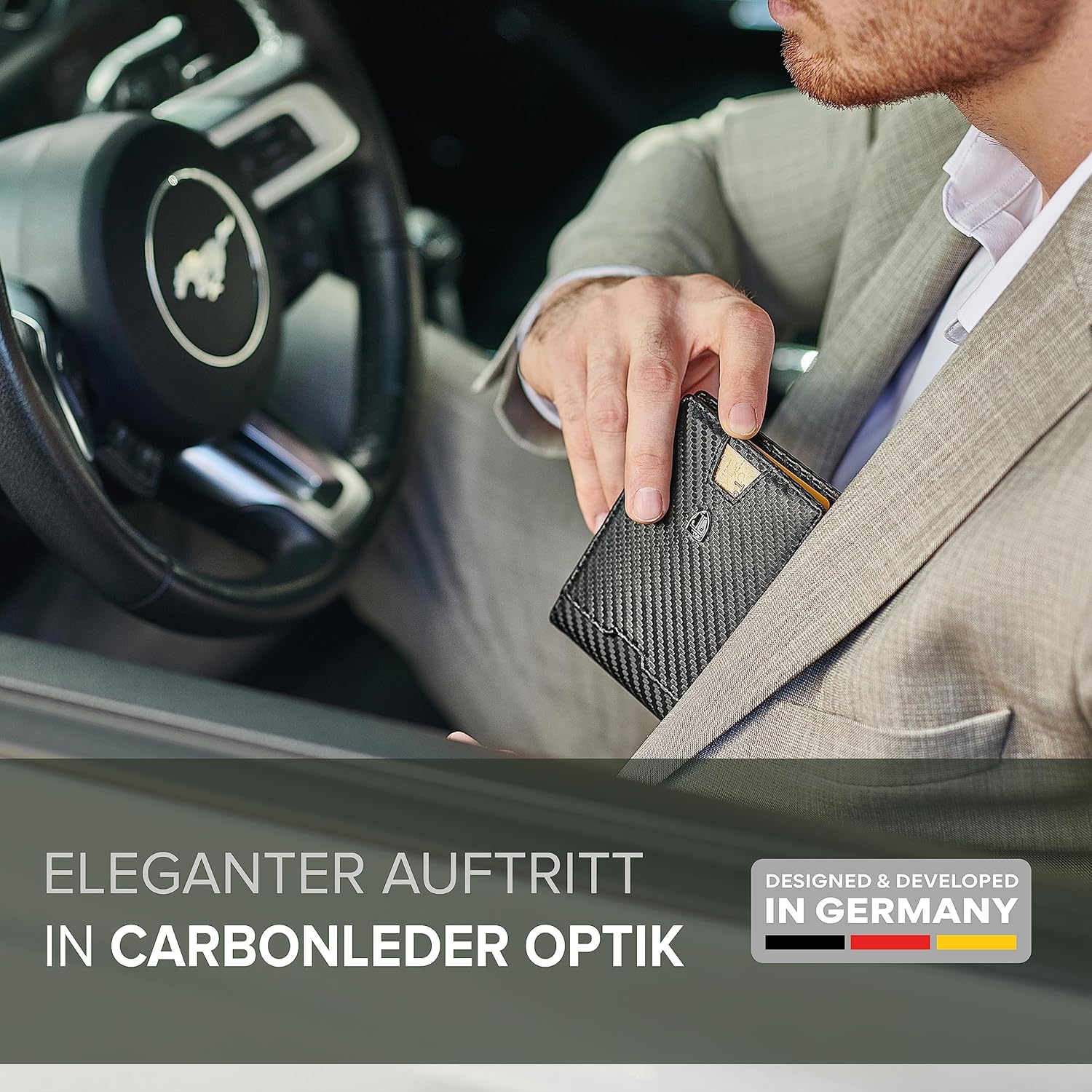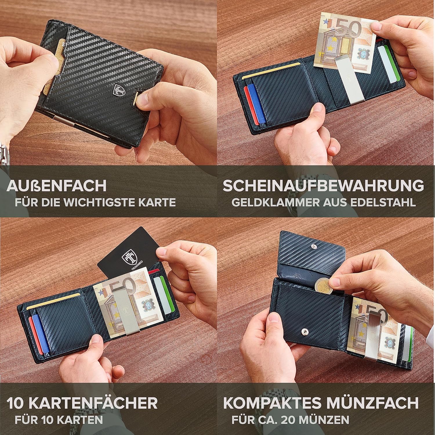• 𝗙𝗨𝗡𝗞𝗧𝗜𝗢𝗡𝗔𝗟𝗘 𝗚𝗘𝗟𝗗𝗕Ö𝗥𝗦𝗘 - Besitzt trotz der Grösse von 11,3 x 8,8 x 1,9 cm 10 Kartenfächer. Das Schiebefach aussen ermöglicht einen schnellen Zugang zu häufig genutzten Karten