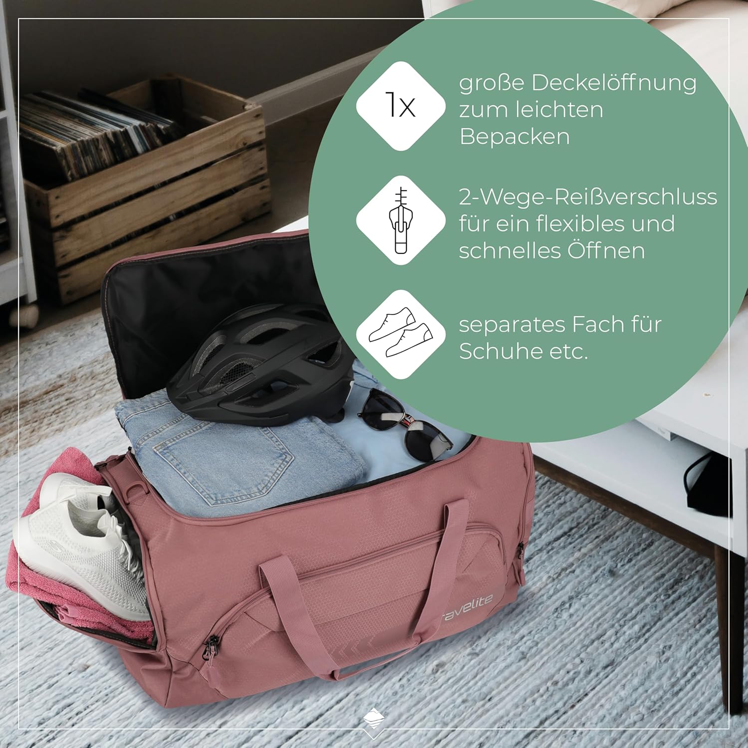 - INNENLEBEN: Die Tasche hat eine grosse Öffnung zum leichten Bepacken und zusätzlich drei grosse Aussentaschen, wovon eine als Schuh- oder Nassfach dienen kann