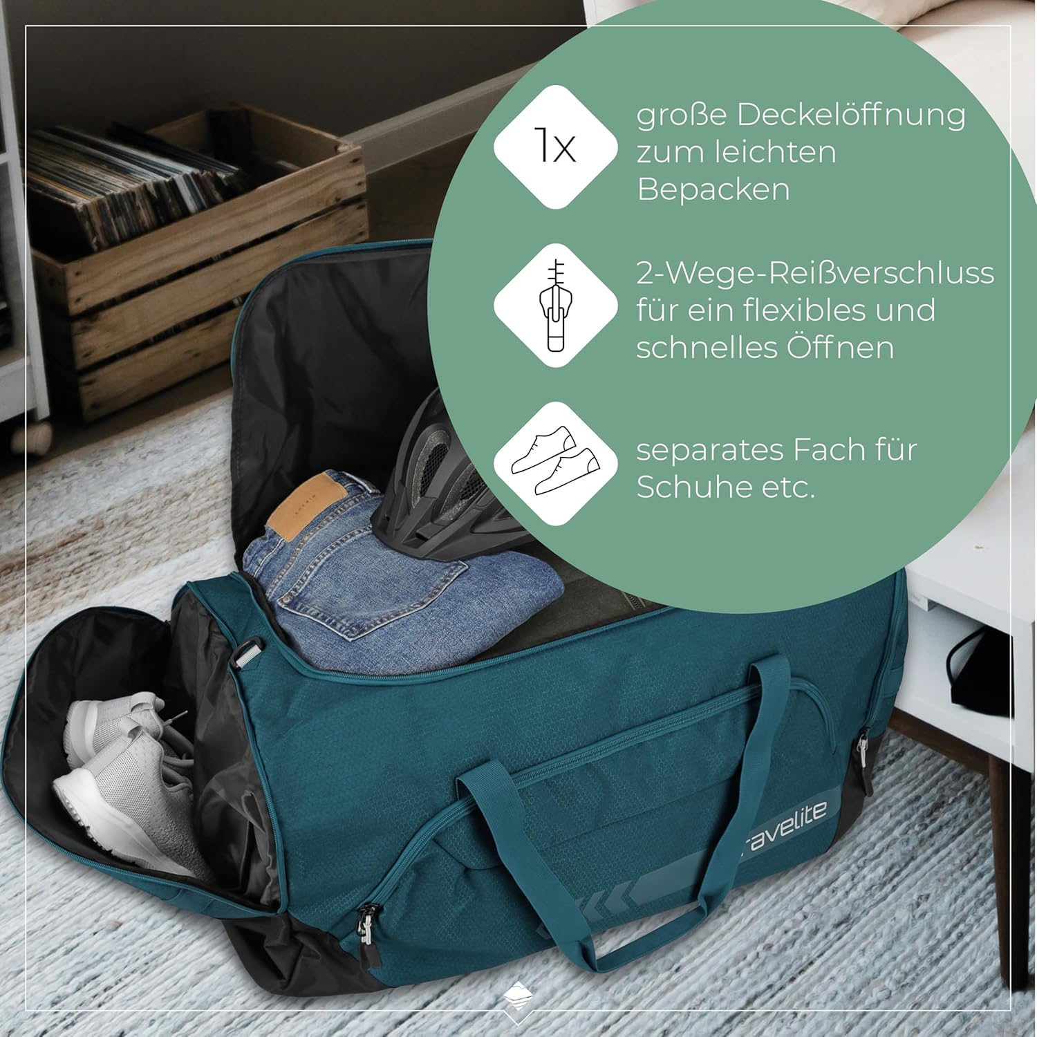 - LIEFERUMFANG: 1 x Reisetasche Grösse XL; Masse 70 x 40 x 43 cm; Volumen 120 Liter; Gewicht 1,3 kg; Material: Polyester; Farbe: Petrol (Türkis)