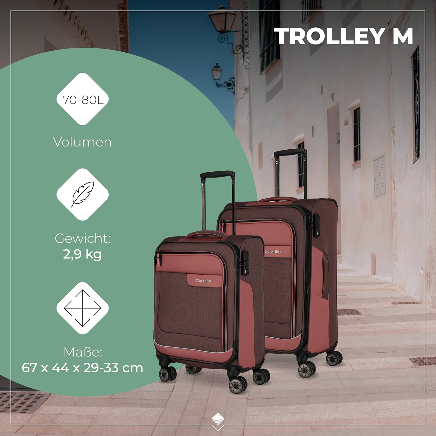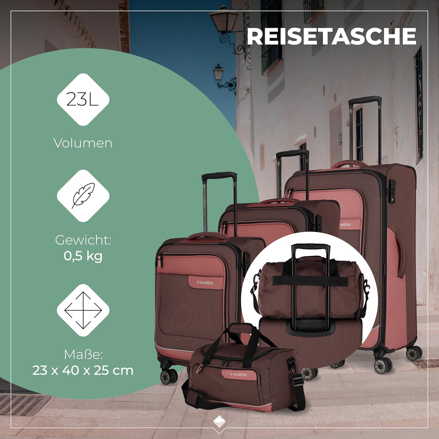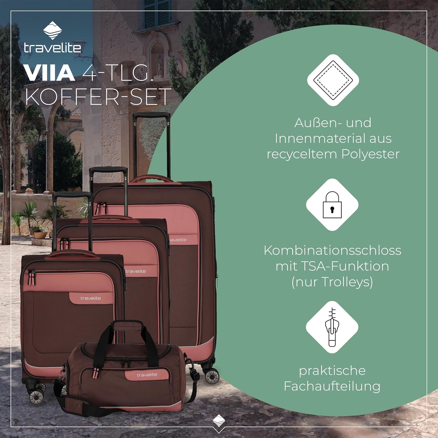 Travelite Kofferset 4 teilig Weichschale 4 Rollen, Grössen S-M-L + Reisetasche,nachhaltig, VIIA Reis