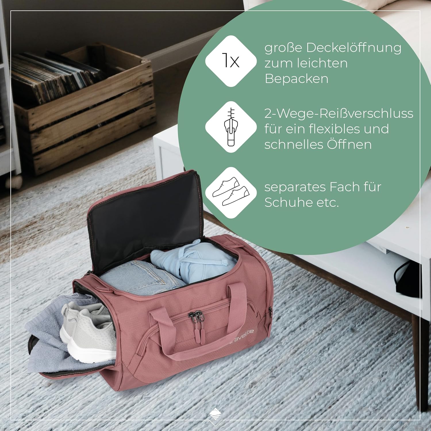 - INNENLEBEN: Die Tasche hat eine grosse Öffnung zum leichten Bepacken und zusätzlich drei grosse Aussentaschen, wovon eine als Schuh- oder Nassfach dienen kann