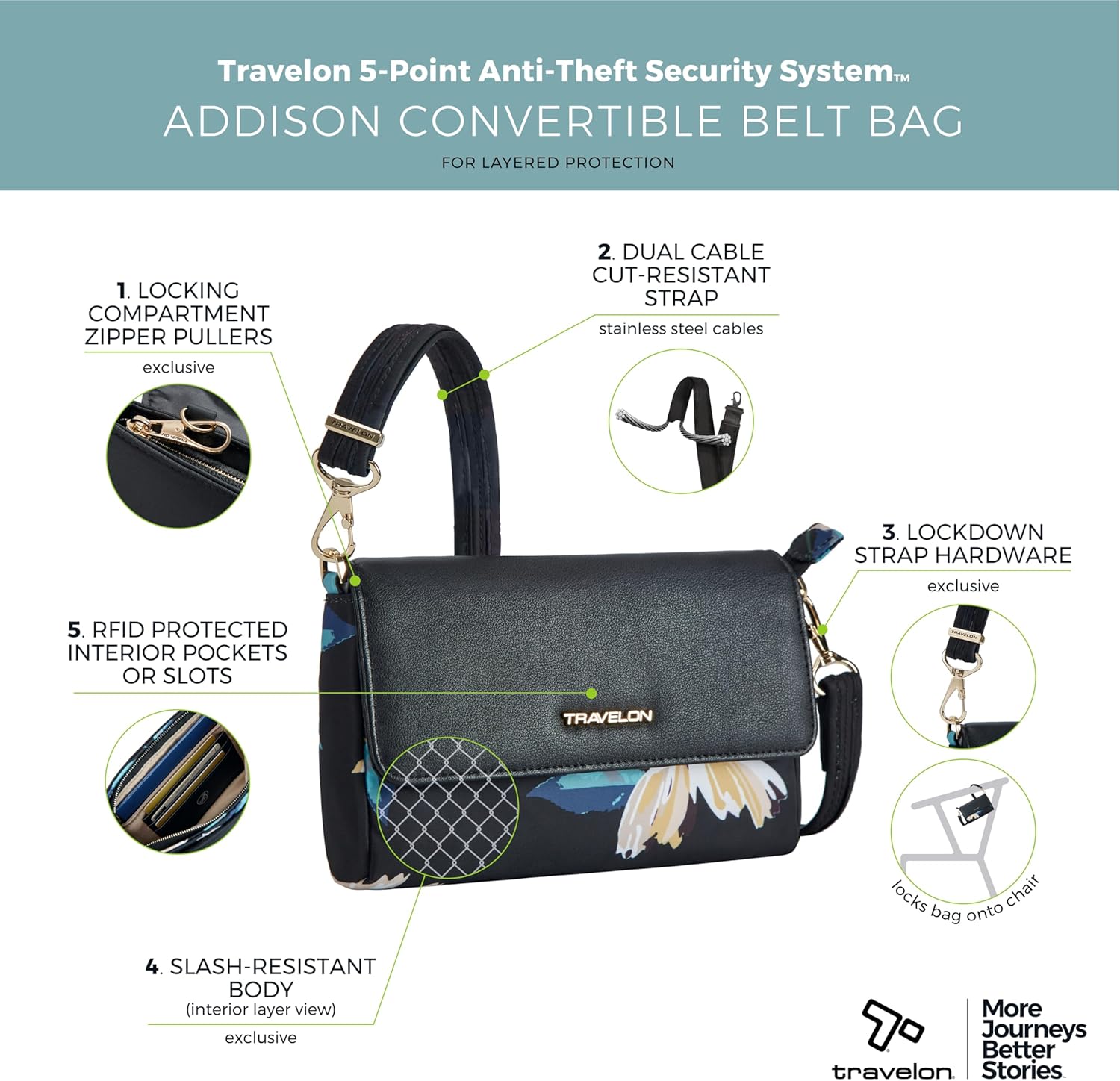 Travelon Addison Gürteltasche, Diebstahlschutz, umwandelbar, mit Blumenmuster, Einheitsgrösse Multic