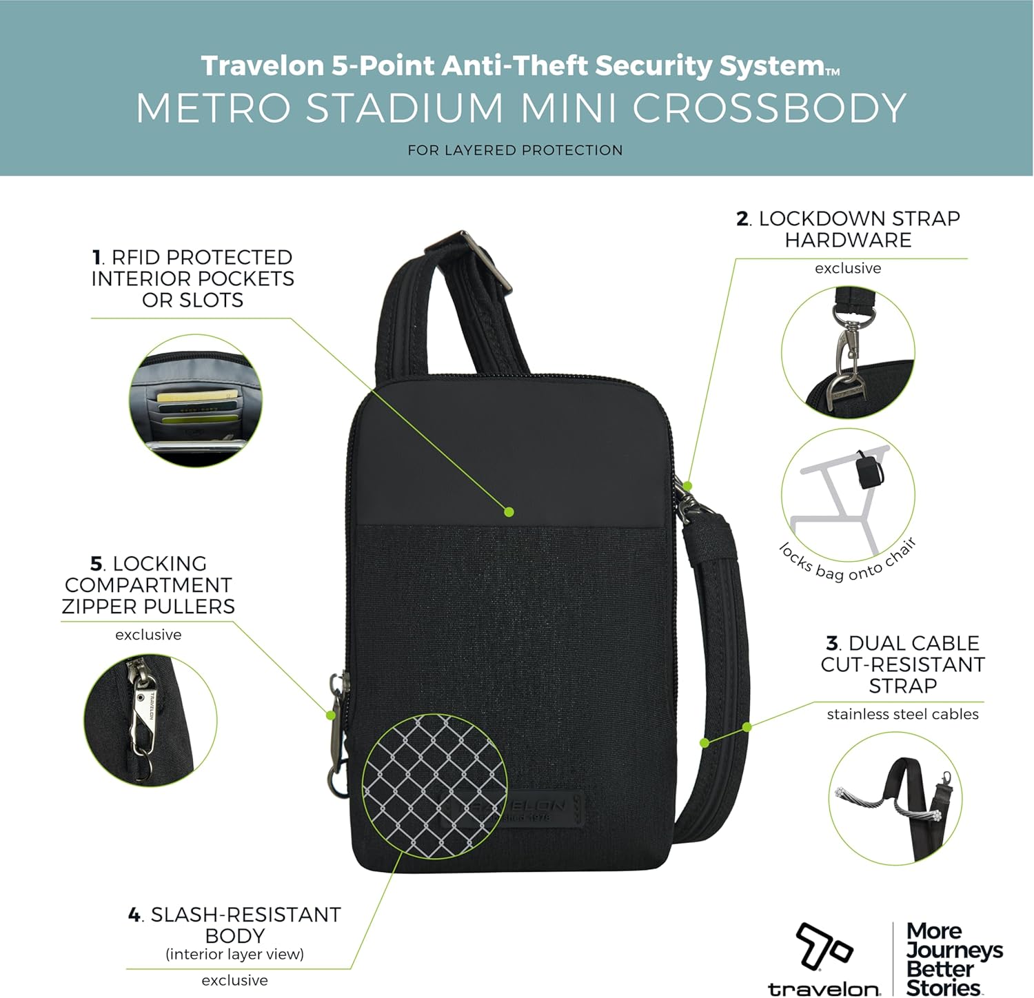 Travelon Unisex-Adult Mini Diebstahlschutz Umhängetasche Schwarz, Schwarz