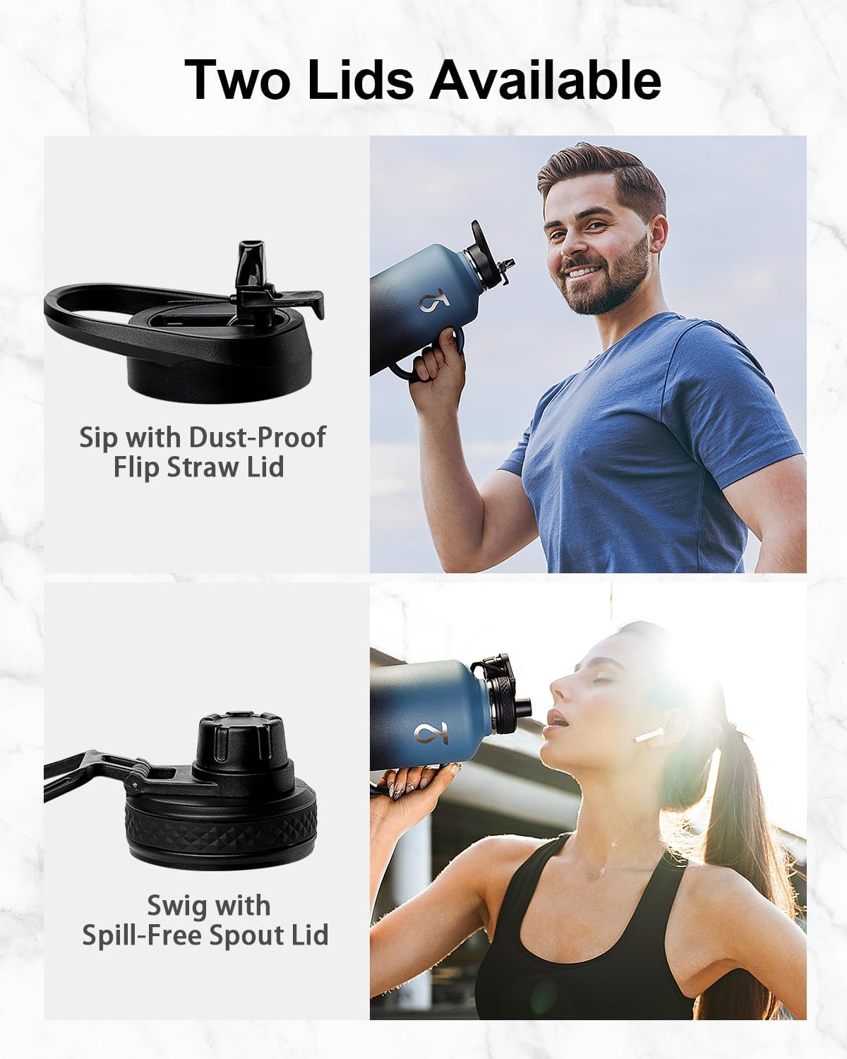 • Kein Verschütten, keine Sorgen: Unsere Edelstahl-Wasserflasche wird mit einem staubdichten Klapp-Trinkhalm-Deckel und einem auslaufsicheren Auslaufdeckel geliefert, der Ihre unterschiedlichen Bedürfnisse erfüllt. Mit präzisen Silikon-Dichtungsringen