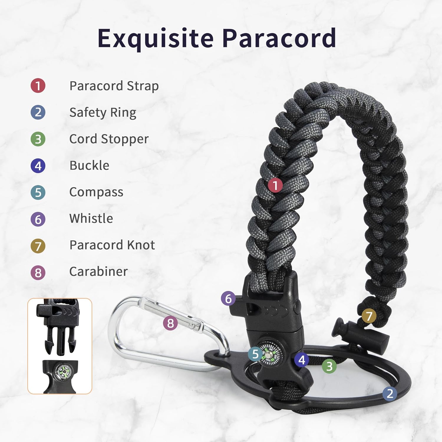 • Voll funktionsfähiges Paracord: Brillantes Paracord mit passenden Farben bringt die Flasche mit einem Hauch von jugendlicher Atmosphäre zur Geltung. Kompakter Kompass und praktischer Karabiner machen die Flasche zum idealen Survival-Kit für