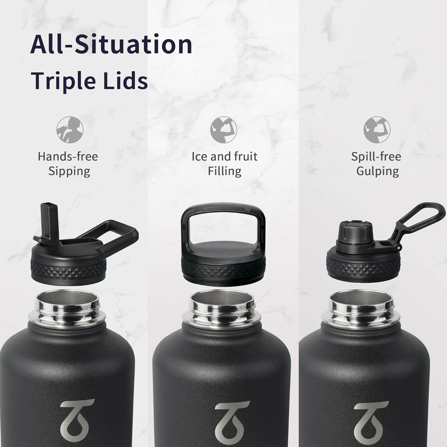 • Auslaufsichere Dreifachdeckel: Jeder Deckel wird mit einem Gummidichtungsring geliefert, um 100% auslaufsicher zu sein. Trinken Sie durch den aufklappbaren Strohhalmdeckel, trinken Sie wie ein Fisch durch den Ausgiessdeckel, oder füllen Sie Eiswürfel