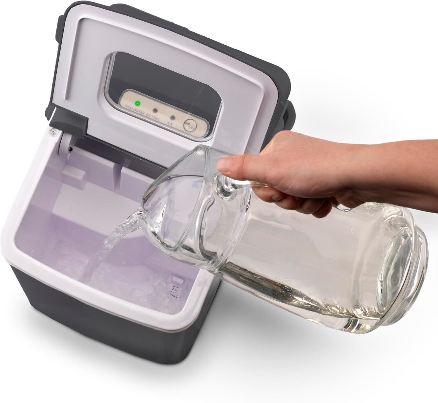• Warnungen: Das Gerät warnt wenn der Eisbehälter voll oder der Wasserbehälter leer ist.