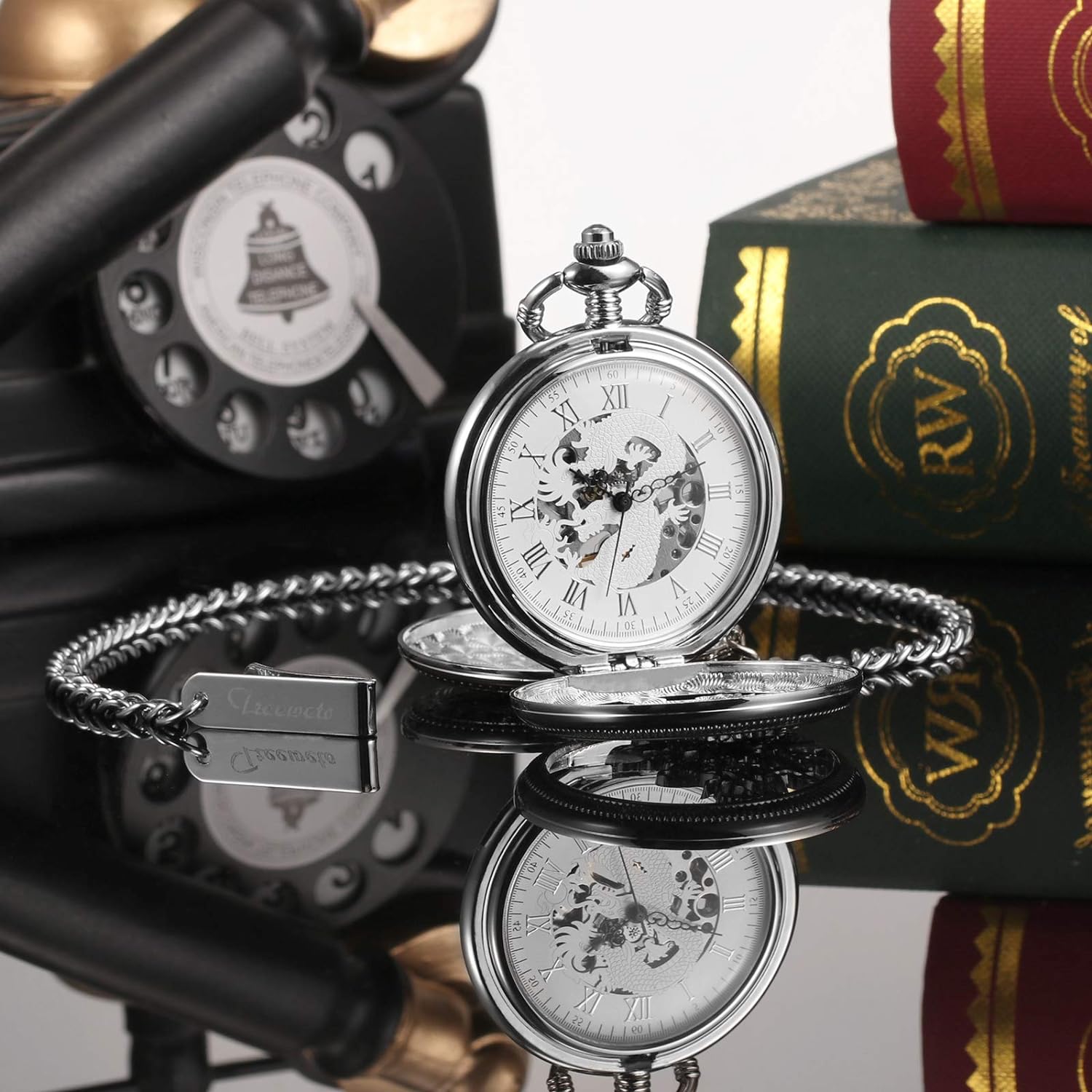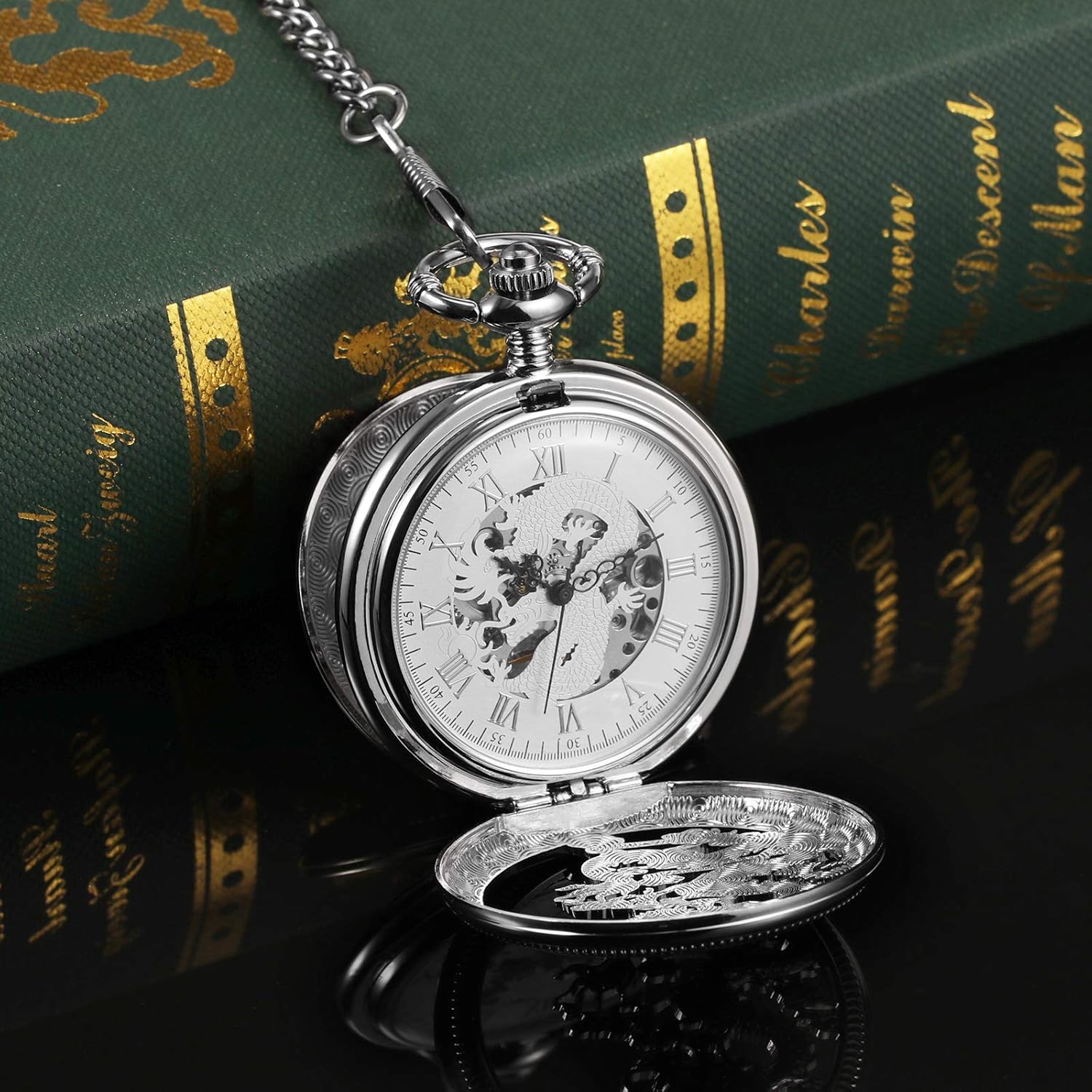 PRODUKTBESCHREIBUNGEN Produktbeschreibung: Eigenschaften: Ausgezeichnete Verarbeitung. 2. Römische Ziffern Waage mit hervorragender Verarbeitung, Vintage-Gehäuse. Doppeltes offenes Getriebegehäuse. 3. Elegantes Design mit präzisem, mechanischem Uhrwerk. 4. Skelett- und transparentes Zifferblatt zeigt exquisite Bewegung und Struktur innerhalb der Uhr. 5. Abnehmbarer Schlüsselanhänger mit Clip am Ende. Anwendungshinweise für mechanische Taschenuhr? Wenn Sie die mechanische Uhr erhalten: A Zeit einstellen Ziehen Sie die Krone von der Uhr weg und drehen Sie die Krone im Uhrzeigersinn, bis Sie die genaue Zeit erreicht haben. B. Aufziehen der Uhr. Drücken Sie die Krone zurück an die Basis der Uhr und ziehen Sie die Uhr auf. Rechtslauf mit 10-15 Umdrehungen Die Leistung wird voll sein (Überaufwicklung wird letztendlich Brechen Sie die Feder). Machen Sie dies einmal täglich (vor dem Schlafen). Andernfalls stoppt es Arbeiten. Bitte nicht übermässig aufziehen, wenn Sie das Gefühl haben, dass die Krone fest ist. Spezifikation (1 cm = 10 mm = 0,39 Zoll) (ungefähr). Gehäusedurchmesser: ca. 50 mm. Gehäusestärke: ca. 15 mm. (Abdeckung im Lieferumfang enthalten). Kettenlänge: ca. 380 mm. (Haken im Lieferumfang enthalten). Kettenmaterial: Metalllegierung. Lieferumfang: 1 x Taschenuhr. 1 x Kette. 1 x Geschenkbox. 1 x Bedienungsanleitung (evtl. nicht in deutscher