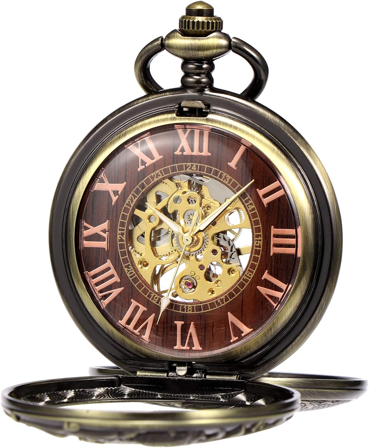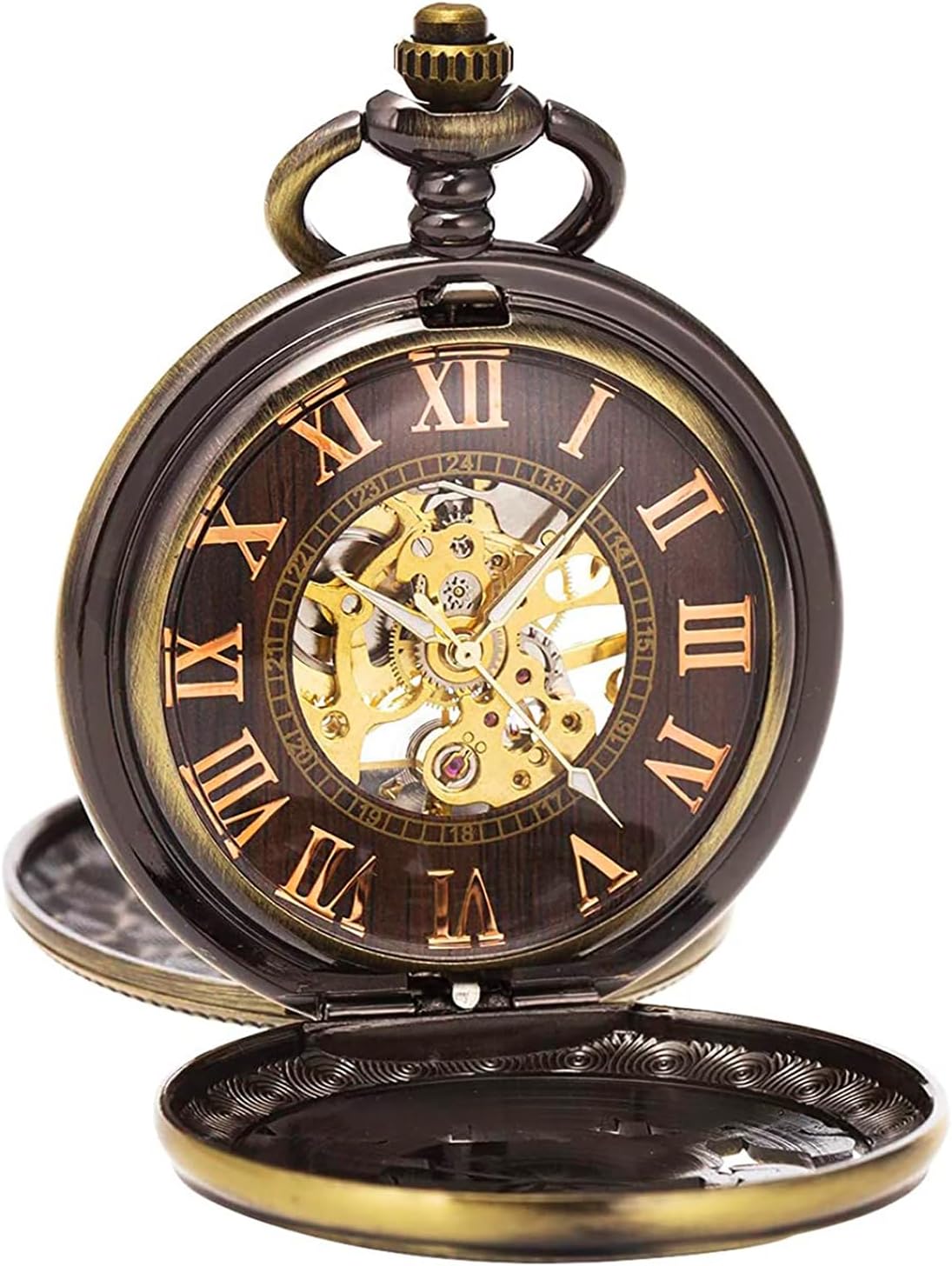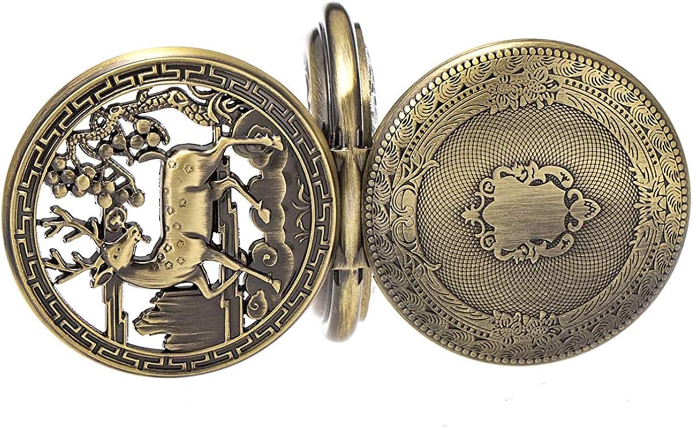 TREEWETO Unisex Taschenuhr Mechanisch Doppelter Abdeckung Rentier Hirsch Leuchtend Skelett Steampunk