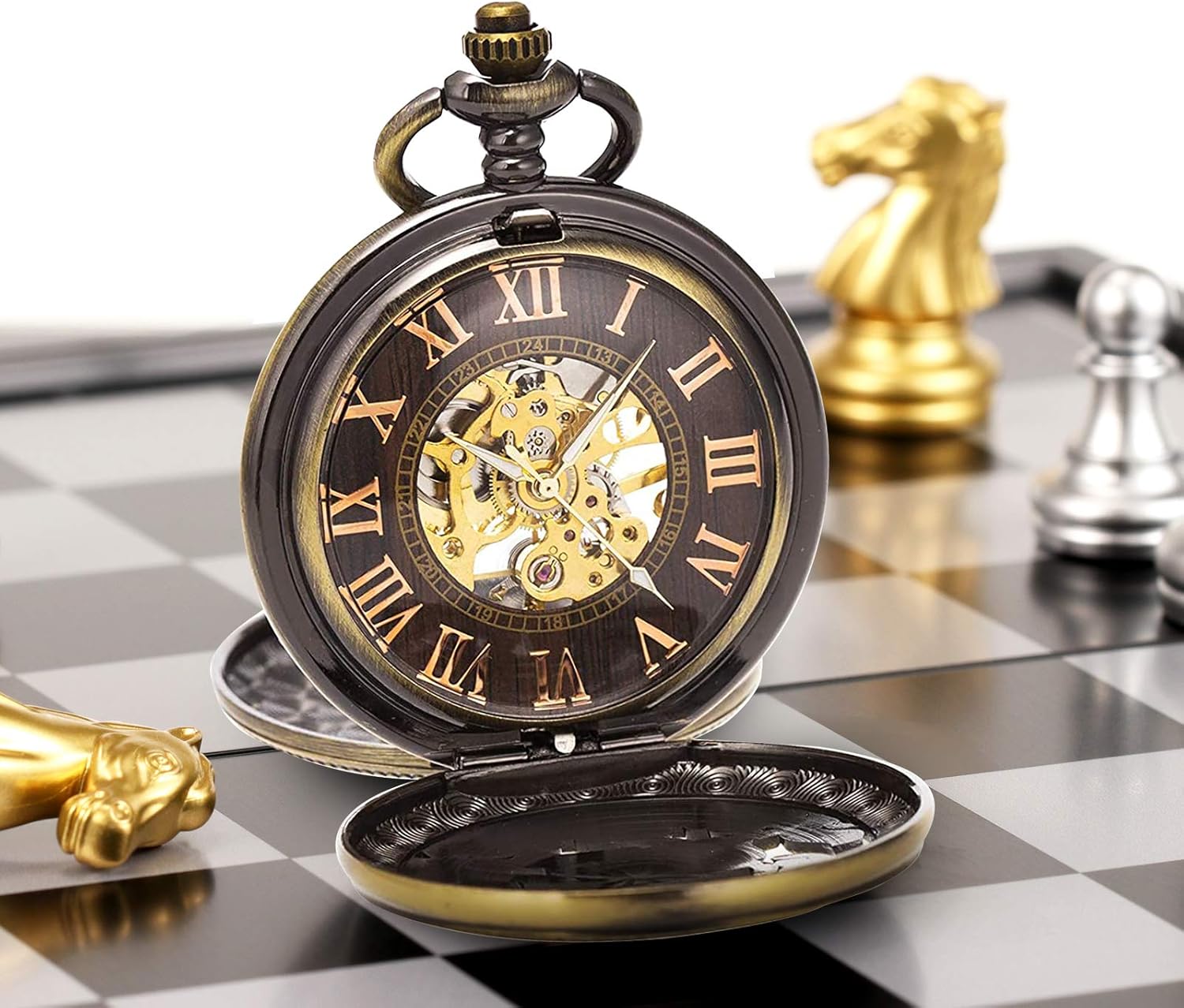 PRODUKTBESCHREIBUNGEN b>TREEWETO GRUPPE TASCHENUHR Befestigt werden unsere Taschenuhren mit einer Kette. Die klassische Art sie zu tragen ist, z.B. bei einem Anzug mit Weste, in der Westentasche. Alternativ kann man die Uhr auch in der linken Brusttasche der Anzugsjacke oder in der Hosentasche tragen. Geschlecht Herren / Damen Stilrichtung Klassisch Einzigartiges Retro Zifferblatt und römische Ziffern mit antiken Form zu beobachten Material Legierung Masse Durchmesser 45 mm Höhe ca. 17 mm Länge der Kette:ca. 370 mm(inklusive Haken) Geeignet für Business, Freizeit, Alltag Geschenk, Sammlung Mechanische Uhr mit Handaufzug Muss manuell aufgezogen werden, wenn die Uhr längere Zeit nicht getragen wurde. Wir empfehlen Ihnen, Ihre Uhr täglich aufzuziehen(mit 20 bis 25 dreh). Ihre Uhr liebt es, wenn Sie dies regelmässig tun. Ziehen Sie Ihre Uhr auf, indem Sie die Krone im Uhrzeigersinn zwischen Daumen und Zeigefinger drehen, bis Sie einen deutlichen Widerstand spüren. Bei diesem Vorgang wird die Feder über die Krone gespannt. Die Anzahl der Umdrehungen ist begrenzt, um ein sogenanntes „Überdrehen" zu vermeiden. Man spricht von Vollaufzug, wenn man die Krone nicht mehr weiter drehen kann. Magnetische Felder können allen mechanischen Uhren schaden. Besser ist es, sie zu meiden. Stellen Sie einmal Gangabweichungen fest, könnte dies an einer Magnetisierung Ihrer Uhr liegen.