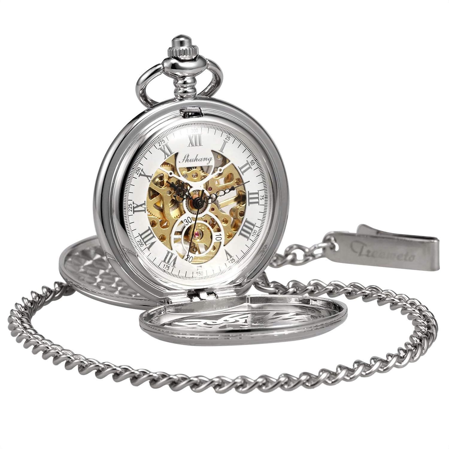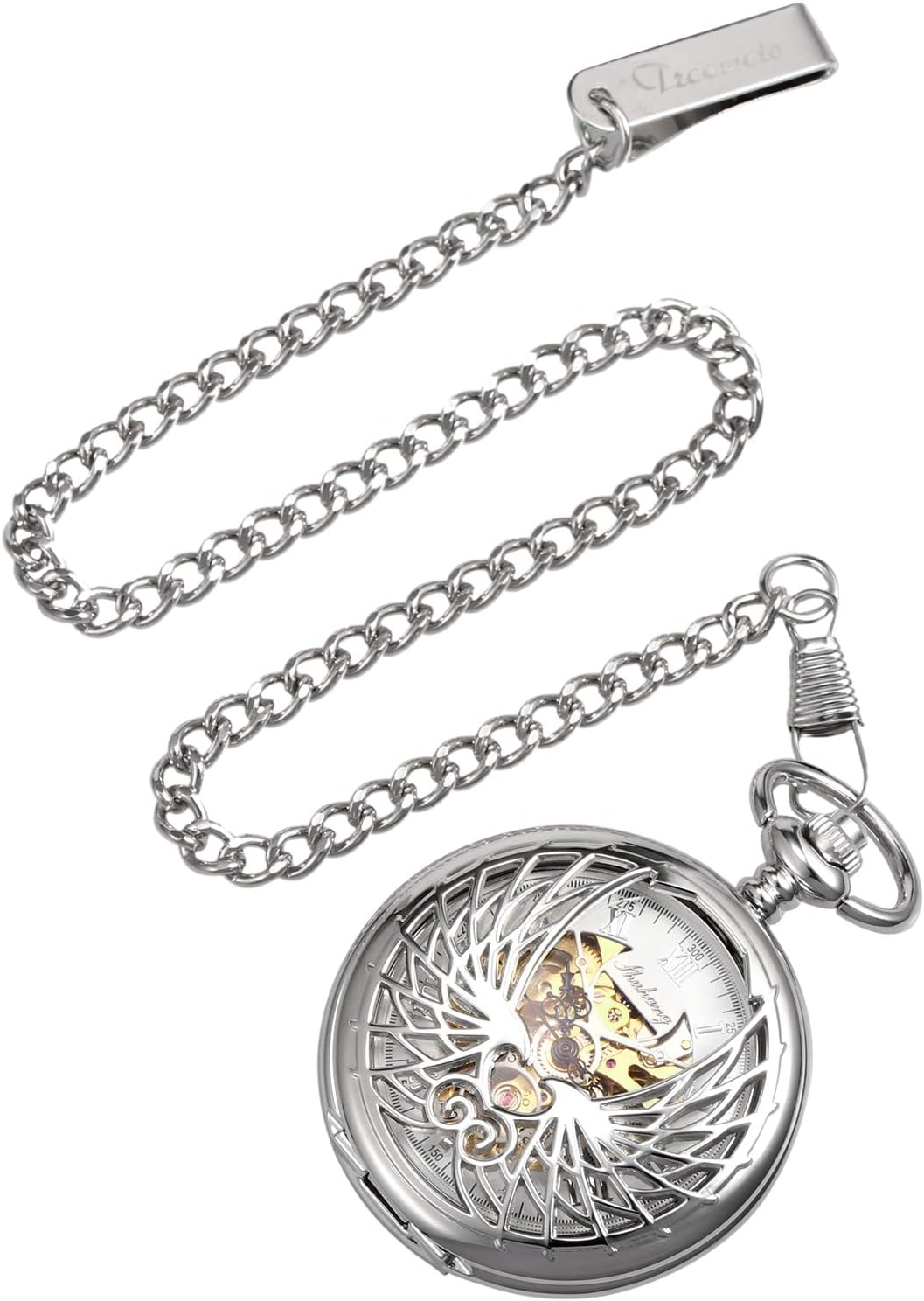 PRODUKTBESCHREIBUNGEN TREEWETO GRUPPE TASCHENUHR Befestigt werden unsere Taschenuhren mit einer Kette. Die klassische Art sie zu tragen ist, z.B. bei einem Anzug mit Weste, in der Westentasche. Alternativ kann man die Uhr auch in der linken Brusttasche der Anzugsjacke oder in der Hosentasche tragen. Geschlecht Herren / Damen Stilrichtung Klassisch Einzigartiges Retro Zifferblatt und römische Ziffern mit antiken Form zu beobachten Material Legierung Masse Durchmesser 45 mm Höhe ca. 15 mm Länge der Kette:ca. 370 mm(inklusive Haken) Geeignet für Business, Freizeit, Alltag Geschenk, Sammlung Mechanische Uhr mit Handaufzug Muss manuell aufgezogen werden, wenn die Uhr längere Zeit nicht getragen wurde. Wir empfehlen Ihnen, Ihre Uhr täglich aufzuziehen(mit 20 bis 25 dreh). Ihre Uhr liebt es, wenn Sie dies regelmässig tun. Ziehen Sie Ihre Uhr auf, indem Sie die Krone im Uhrzeigersinn zwischen Daumen und Zeigefinger drehen, bis Sie einen deutlichen Widerstand spüren. Bei diesem Vorgang wird die Feder über die Krone gespannt. Die Anzahl der Umdrehungen ist begrenzt, um ein sogenanntes "Überdrehen" zu vermeiden. Man spricht von Vollaufzug, wenn man die Krone nicht mehr weiter drehen kann. Magnetische Felder können allen mechanischen Uhren schaden. Besser ist es, sie zu meiden. Stellen Sie einmal Gangabweichungen fest, könnte dies an einer Magnetisierung Ihrer Uhr liegen.