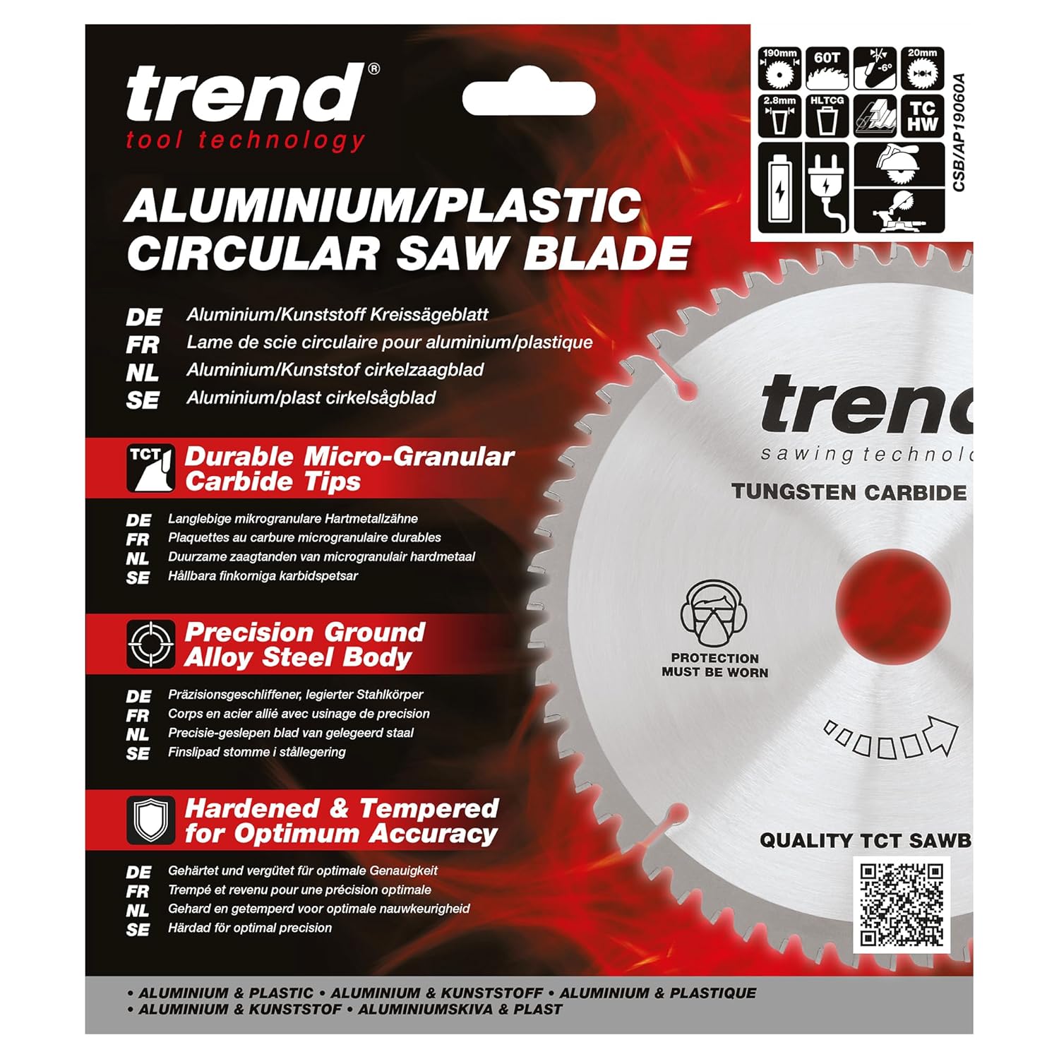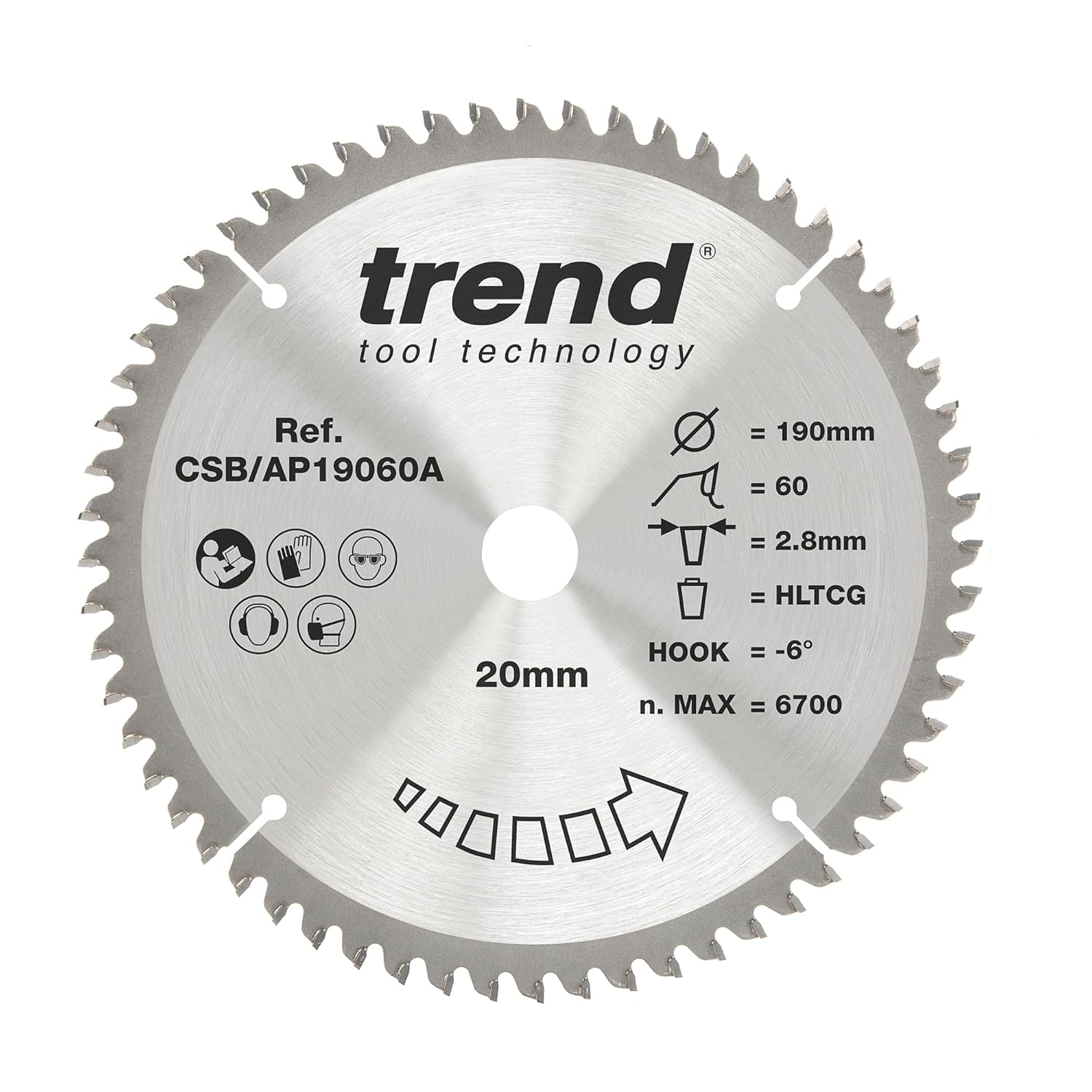 Trend CraftPro Arbeitsplatte Aluminium und Kunststoff TCT Kreissägeblatt, 190mm Durchmesser x 60 Zäh