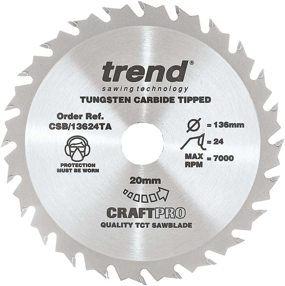 Trend CraftPro Sägeblatt - 136mm Durchmesser x 20mm Bohrung x 24 Zähne TCT für Akku-Sägen, CSB/13624