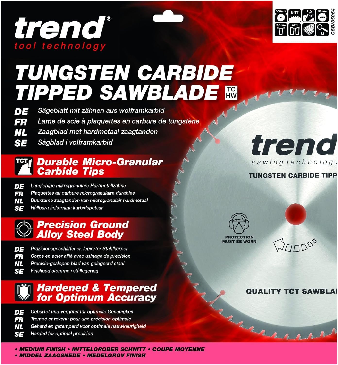 Trend CraftPro Sägeblatt, 350mm Durchmesser x 64 Zähne x 30mm, Hartmetallbestückt, CSB/35064