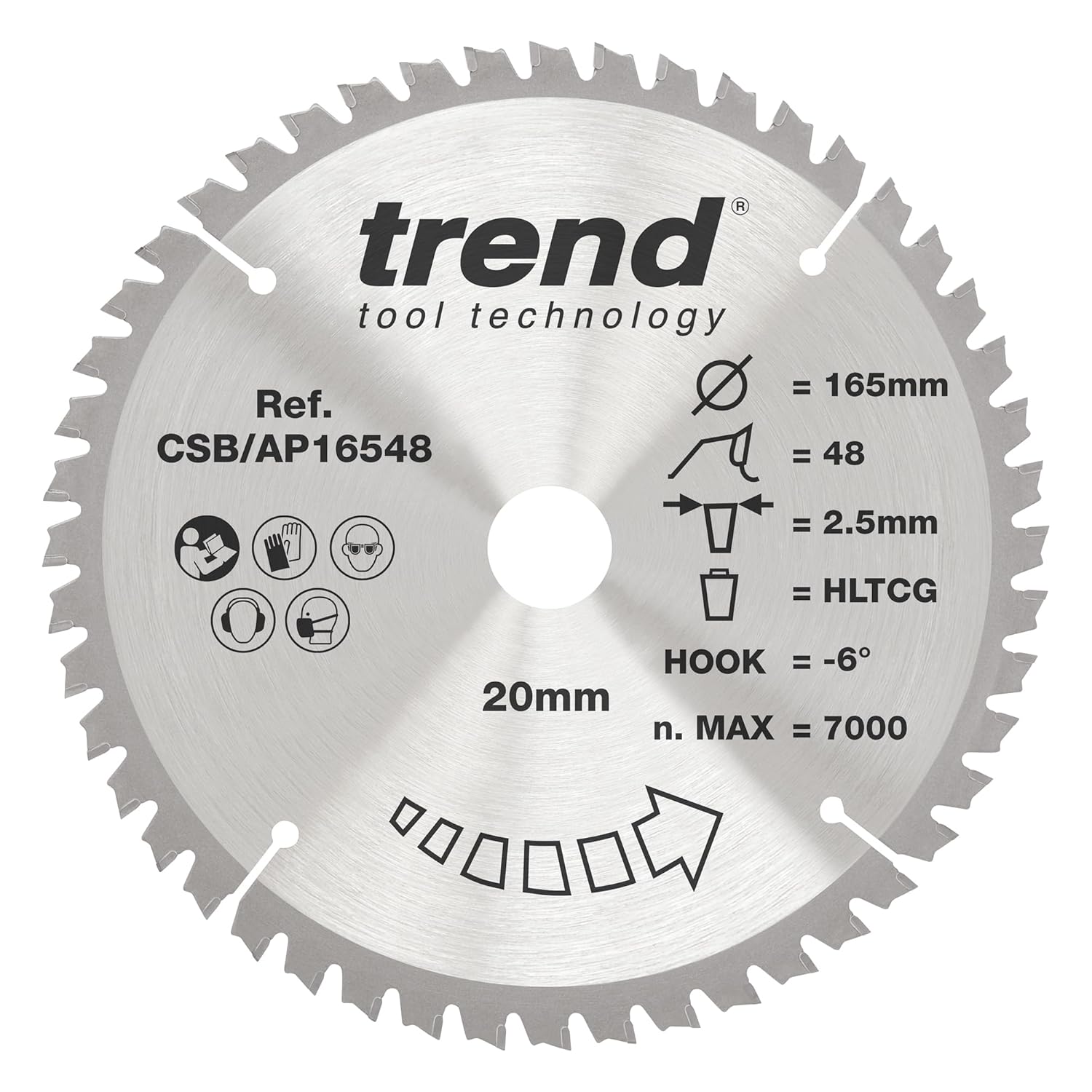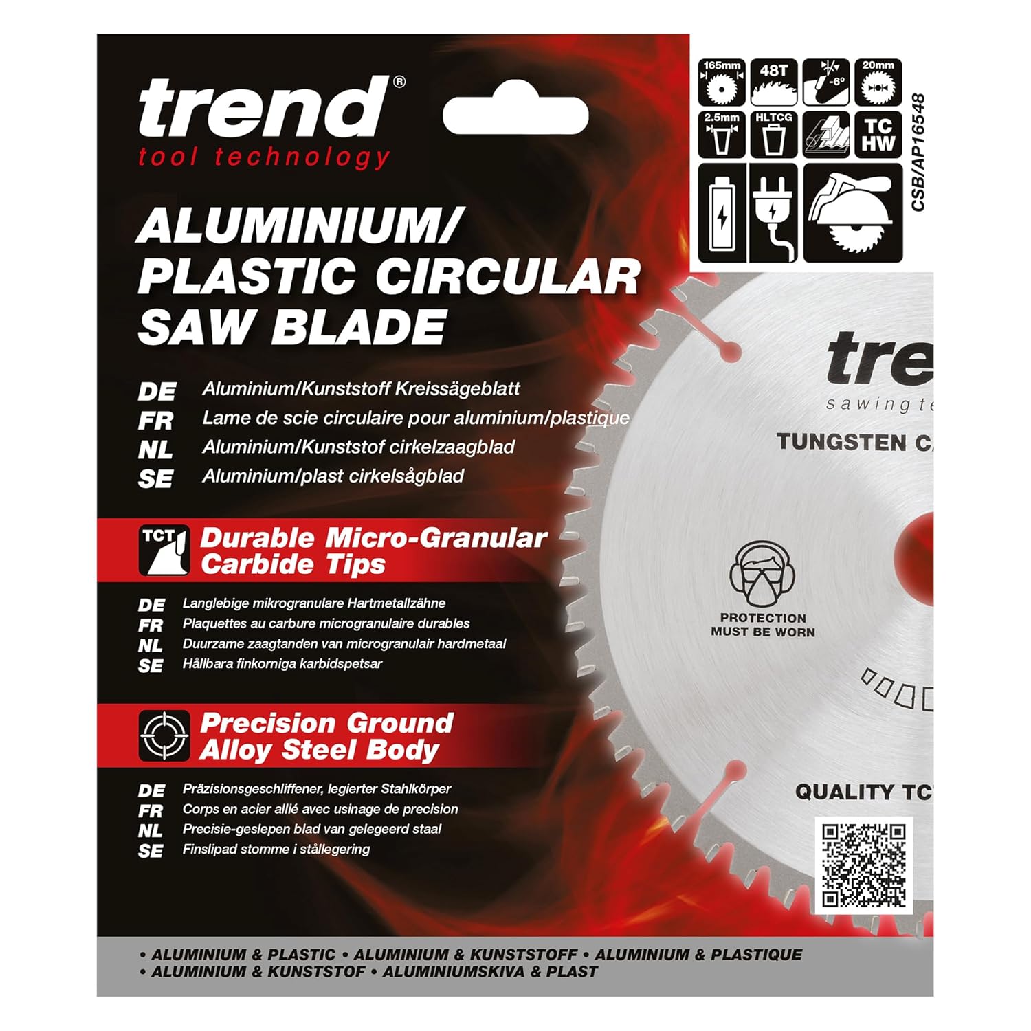 Trend CraftPro Arbeitsplatte Aluminium und Kunststoff TCT Kreissägeblatt, 165mm Durchmesser x 48 Zäh