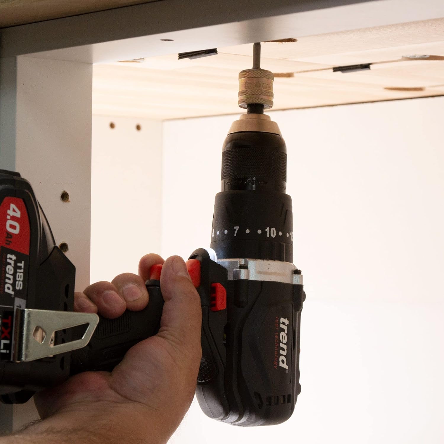 - Der robuste Getriebekopfmechanismus wird von einem 4-mm-Sechskant-Bit angetrieben und lässt sich mit einer Hand und einem Bohrer/Schrauber in Sekundenschnelle festziehen.
