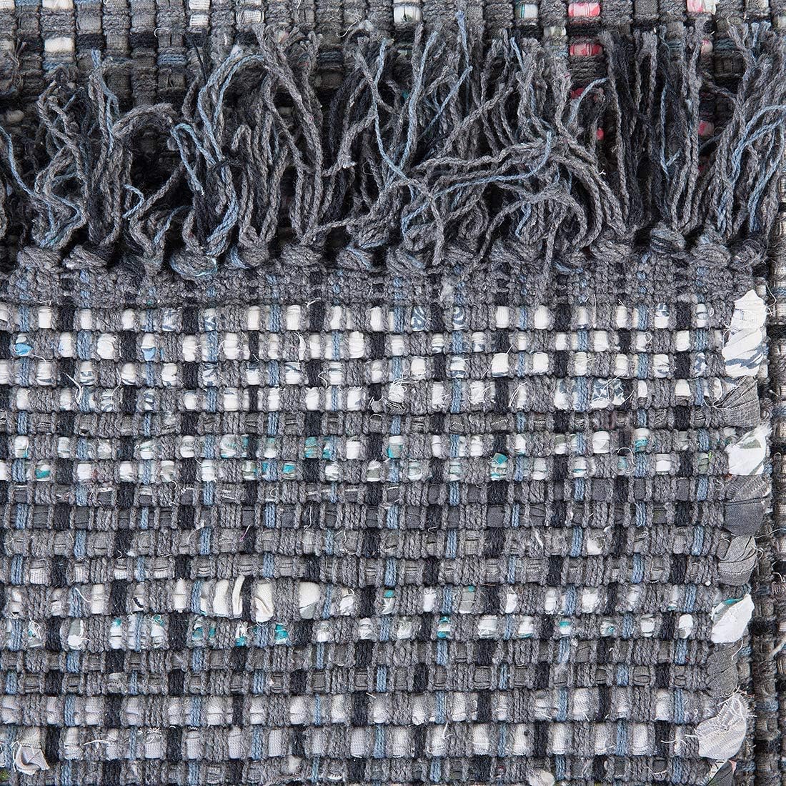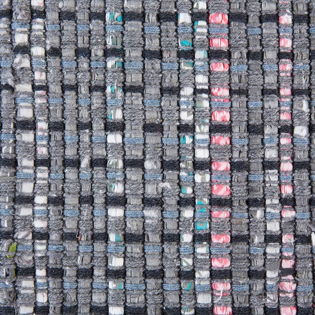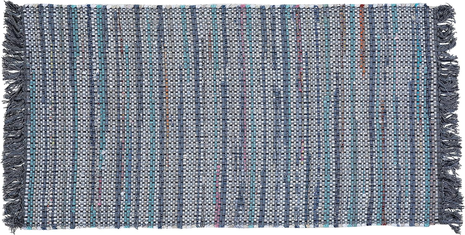 • Handgewebter Kurzflorteppich mit den Dimensionen 80x150 cm (+/- 5-7 cm), 1 cm dick, aus Baumwolle