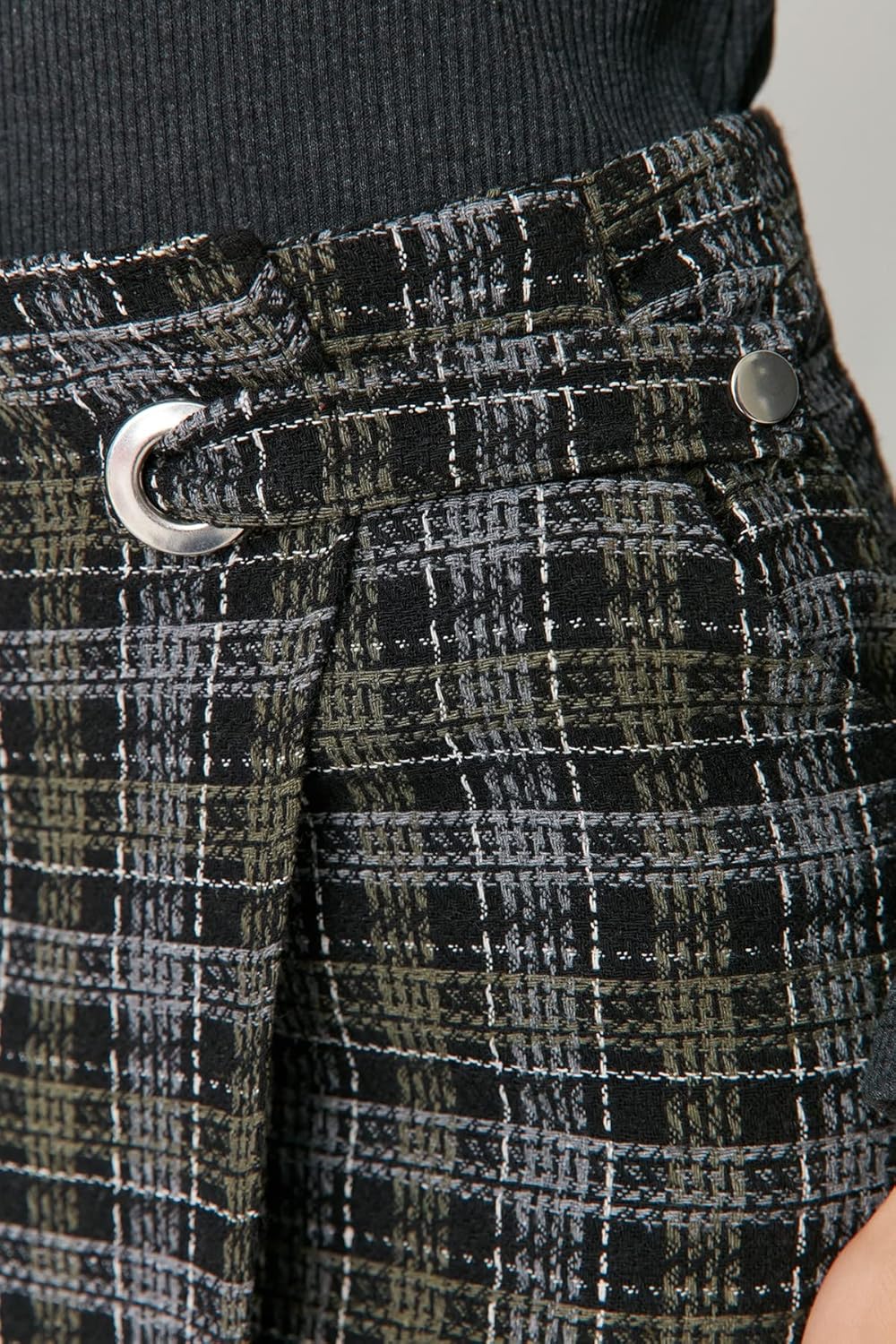 PRODUKTBESCHREIBUNGEN Model's Measurements: Height: 1.75 Bust: 86 Waist: 61 Hips: 91 The product on the mannequin is size S/36. 35% Cotton, 37% Polyester, 21% Viscose, 5% Acrylic, 2% Polyimide, Woven Fabric Length: 44cm