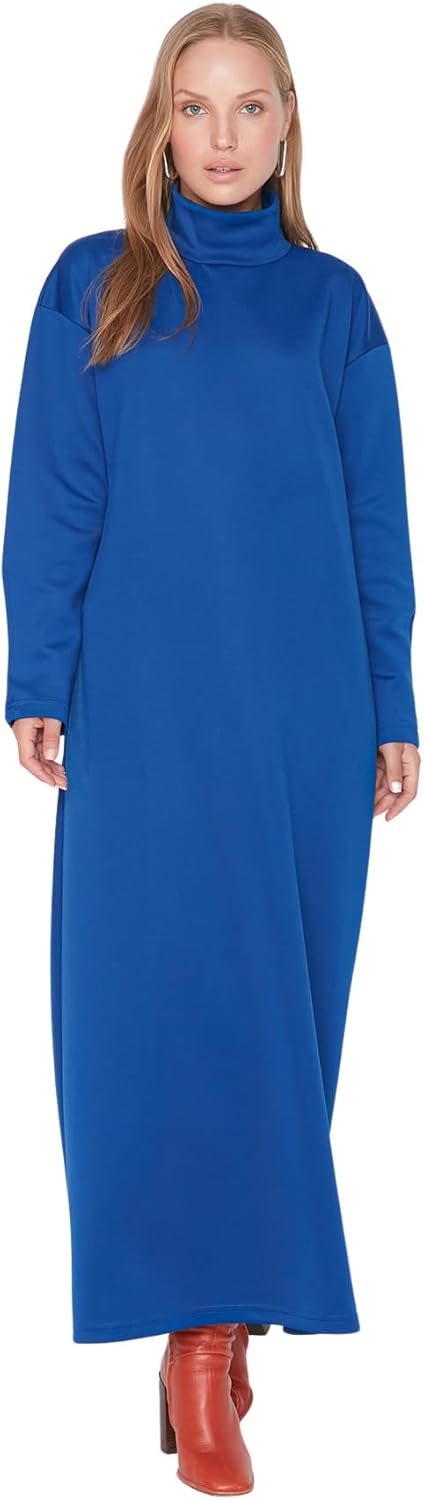 TRENDYOL Damen Woman Midi Bodycon Rollkragen Trikot Kleid, Blue, S