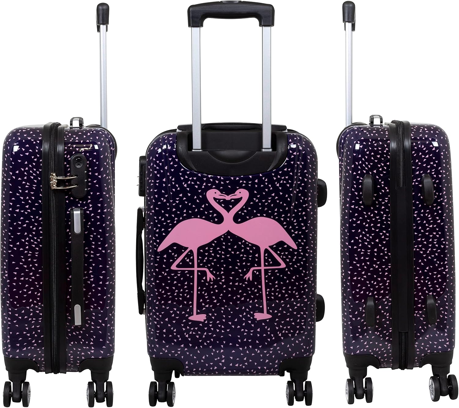 - Designkoffer: 2 pinke verliebte Flamingos auf blau-pinkem Hintergrund
