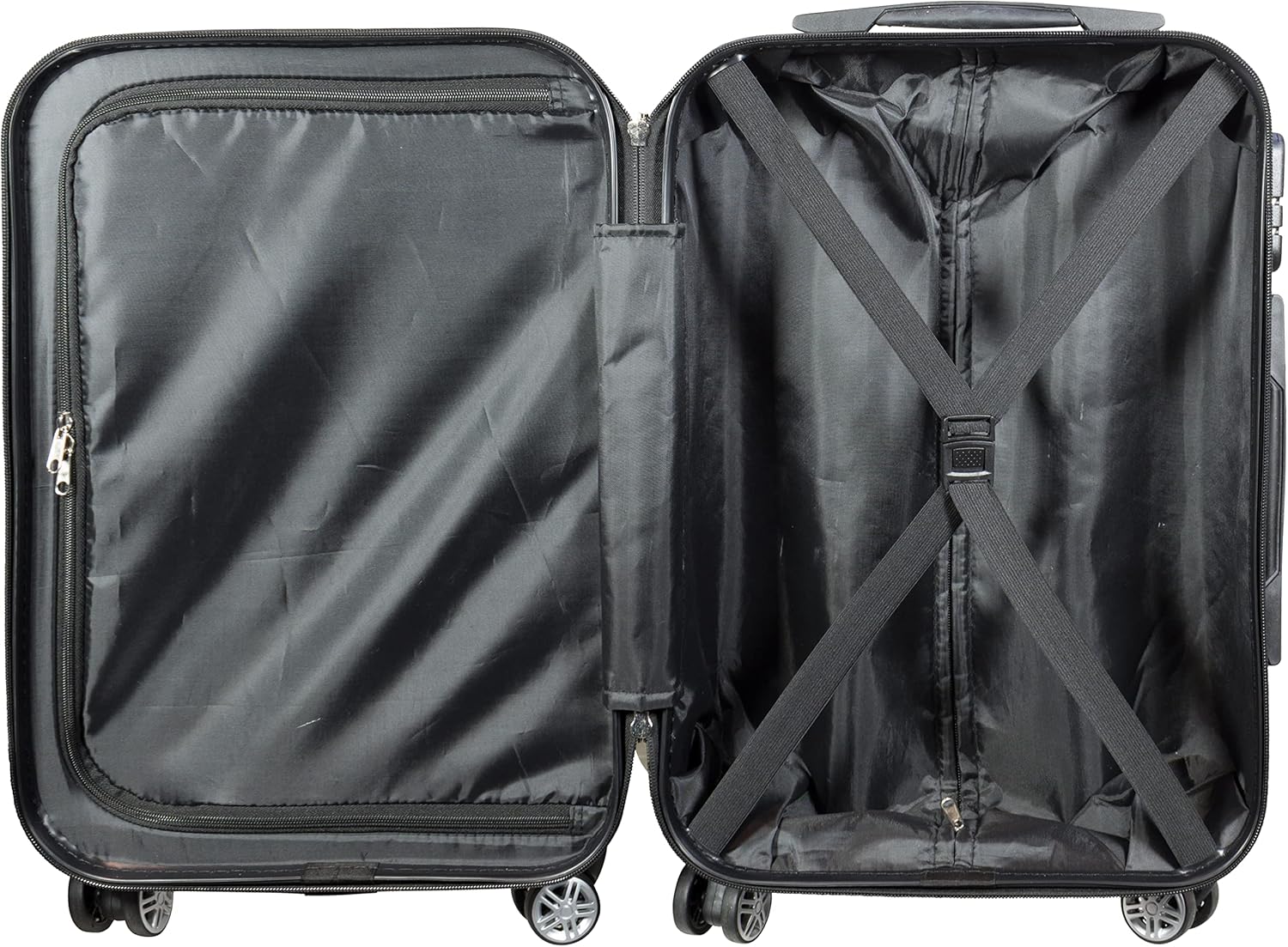 - Koffereinteilung innen mit Mehrfachteilung und stabilisierendem Gepäckband, beidseitig packbar, Teleskop Griff mit Trolleyfunktion, zusätzlicher seitlicher Tragegriff, integriertes Zahlenschloss