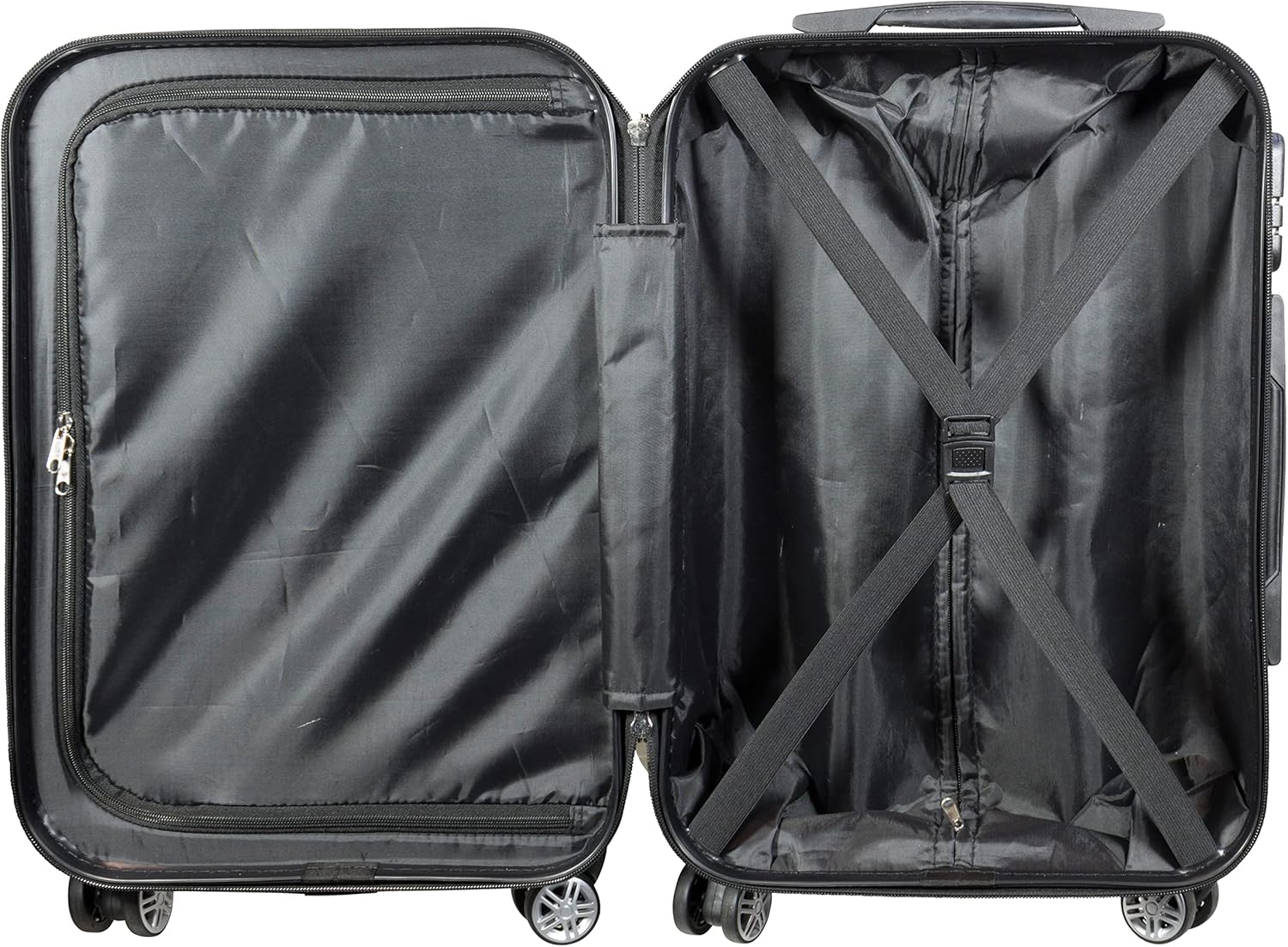 - Koffer innen mit Mehrfachteilung, beidseitig packbar, stabilisierendes Gepäckband, Innenfutter mit Reissverschluss für Extrafach, fest integriertes Zahlenschloss