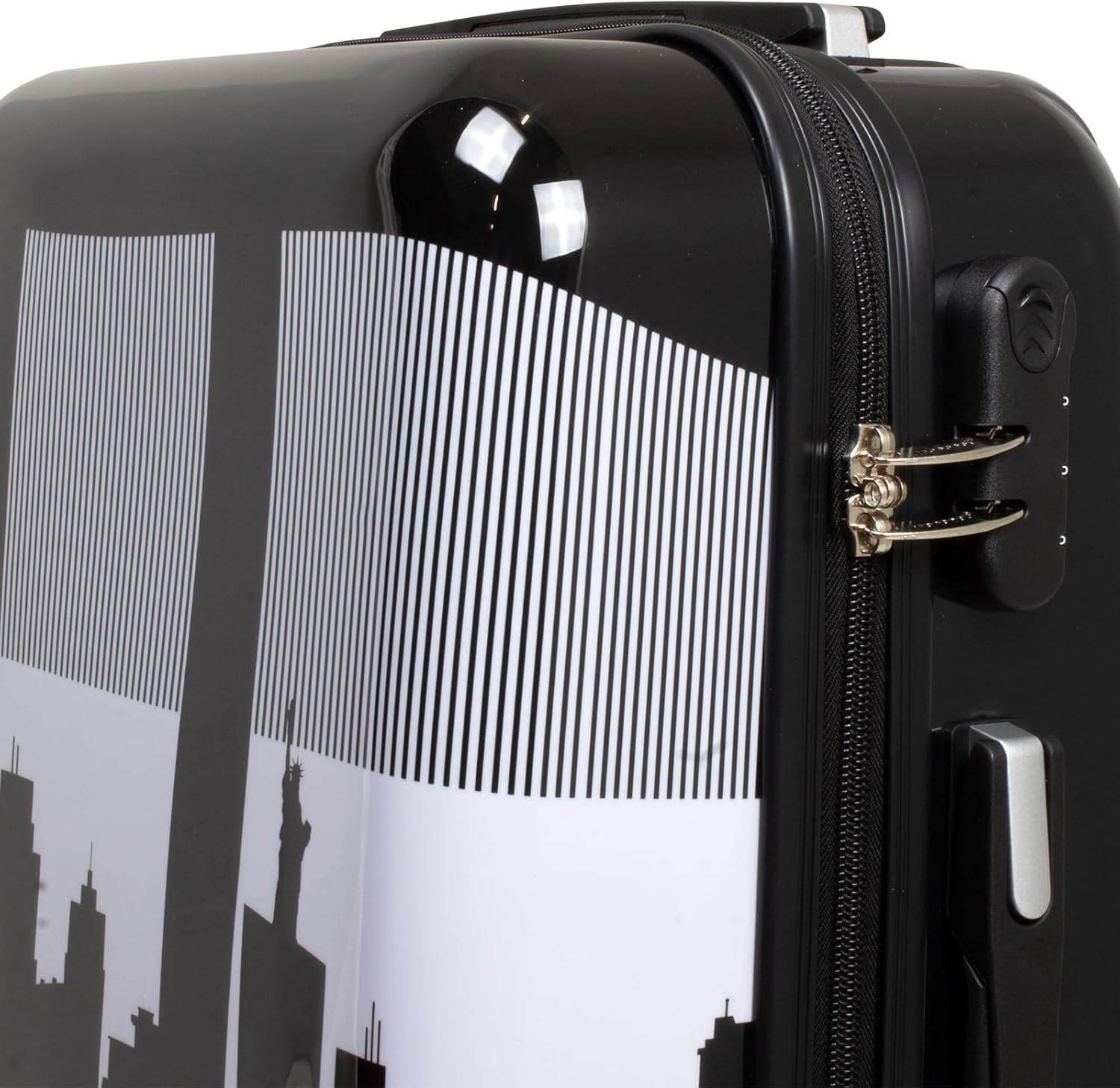 • Design: schwarze, stillvolle, Polycarbonat Koffer mit New York, Manhattan Design sind die richtige Eyecatcher