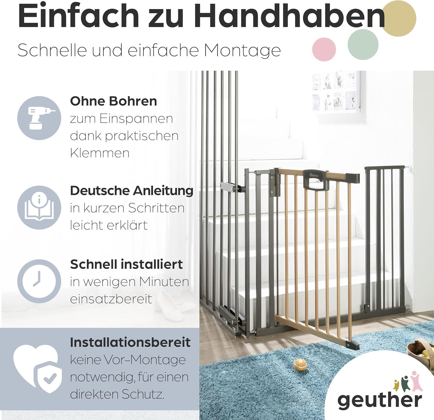 - Treppenschutzgitter Easylock Plus zum Klemmen für öffnungen von 84.5-124.5 cm aus Holz & Metall