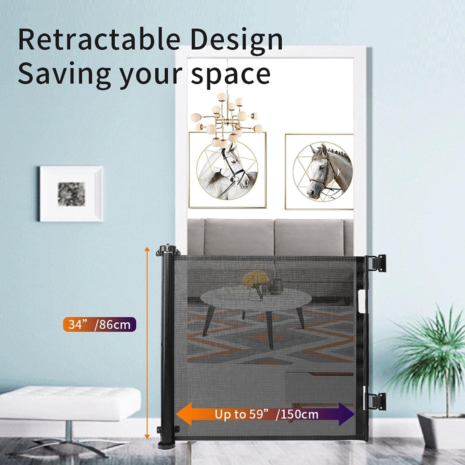 - Treppenschutzgitter ausziehbar ohne bohren-Dieses extra hohe und extra breite einziehbare Babygitter für den Aussenbereich erstreckt sich bis zu 150cm breit und ist 86cm hoch,geeignet für viele Orte im Innen-und Aussenbereich.Wenn Sie sich für dieses treppenschutzgitter ausziehbar,müssen Sie sich keine Sorgen machen,dass Sie Platz einnehmen,wenn Ihr Baby oder Ihre Haustiere nicht zu Hause sind.Das Netzfutter lässt sich direkt aufrollen und spart somit Platz
