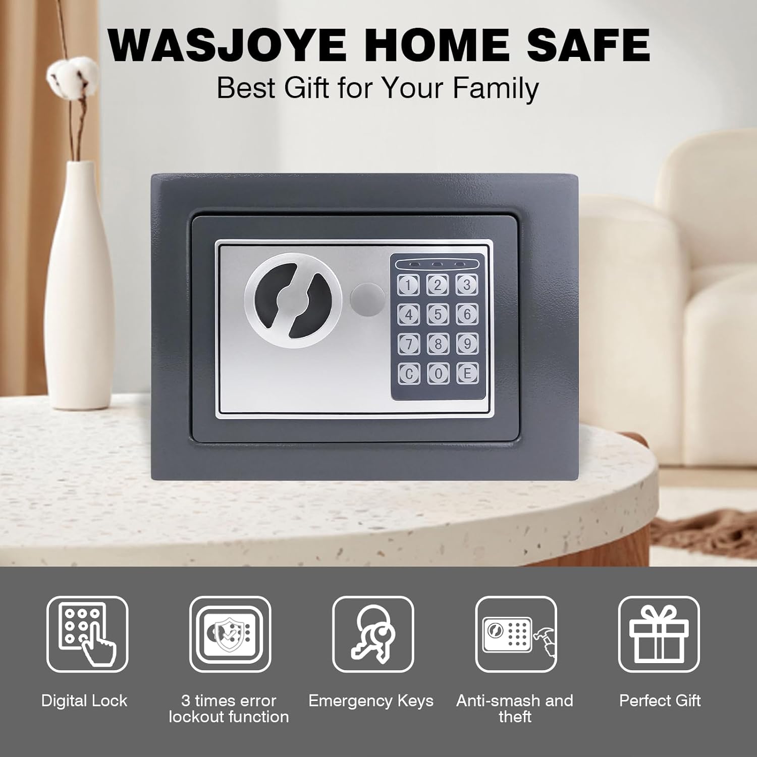 • 🔑Override Key: Sie benötigen die Schlüssel zum Öffnen des Safes, wenn Sie ihn zum ersten Mal benutzen. Wenn Sie den digitalen Code vergessen und nach 3 falschen Kombinationsversuchen benötigen Sie den Überbrückungsschlüssel, um den Safe zu