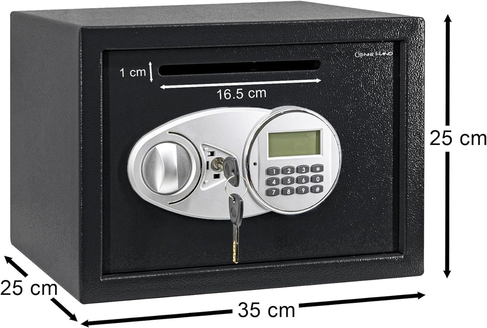 - Der aus einbruchsicherem Stahl gefertigte Safe, bietet sowohl Zuverlässigkeit als auch Langlebigkeit.