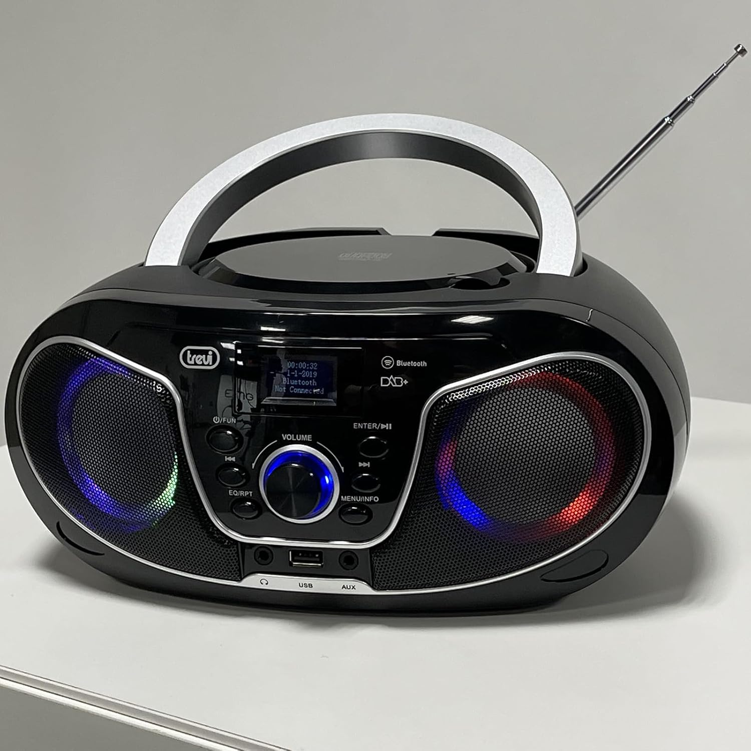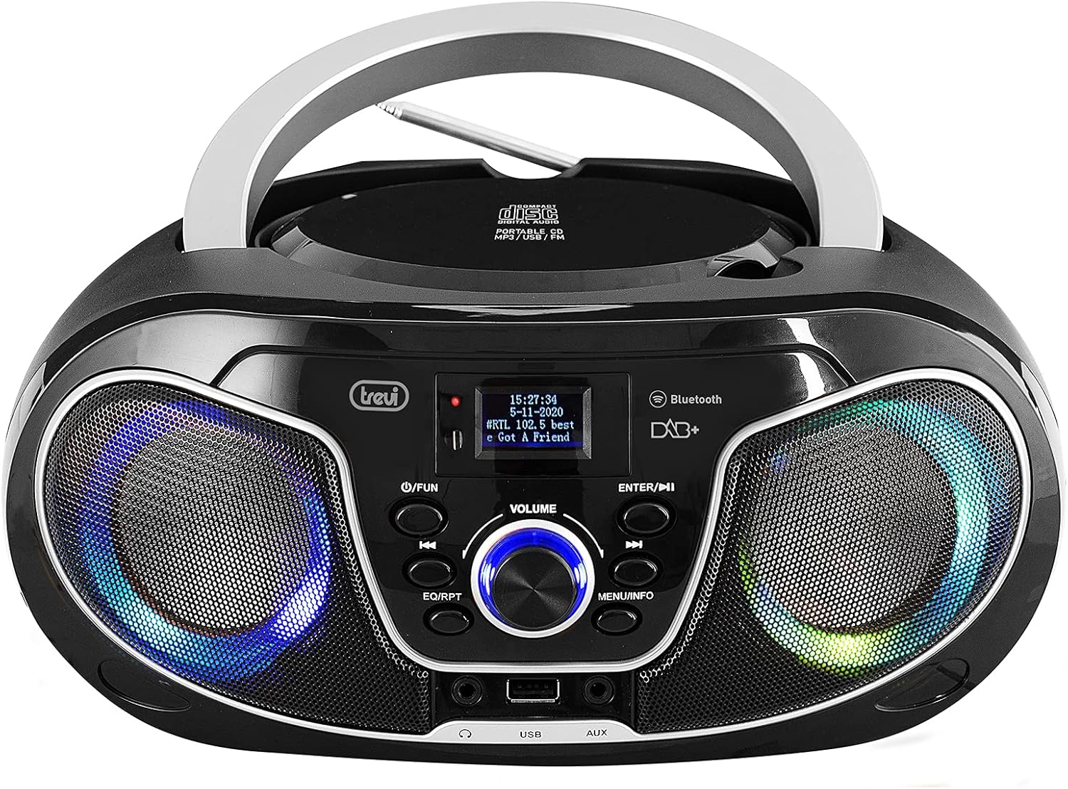 - Trevi CMP 588 DAB Tragbares Stereo mit DAB/DAB+ und FM mit RDS, Dot Matrix Display mit hoher Ablesbarkeit, CD, MP3, USB, AUX-IN, Bluetooth, Kopfhörerbuchse