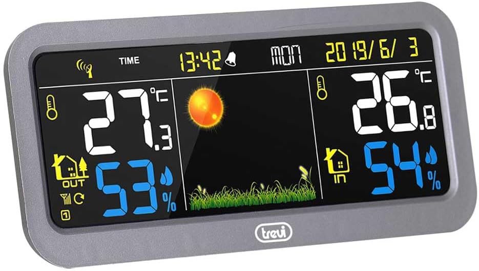 - Funkuhr 12/24h mit HPA Barometer mit digitaler Luftdruckanzeige und Wettervorhersage-Symbol