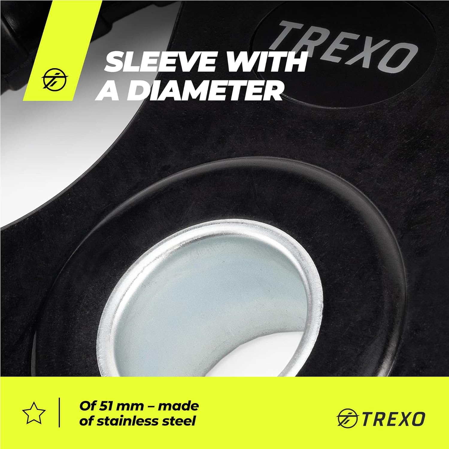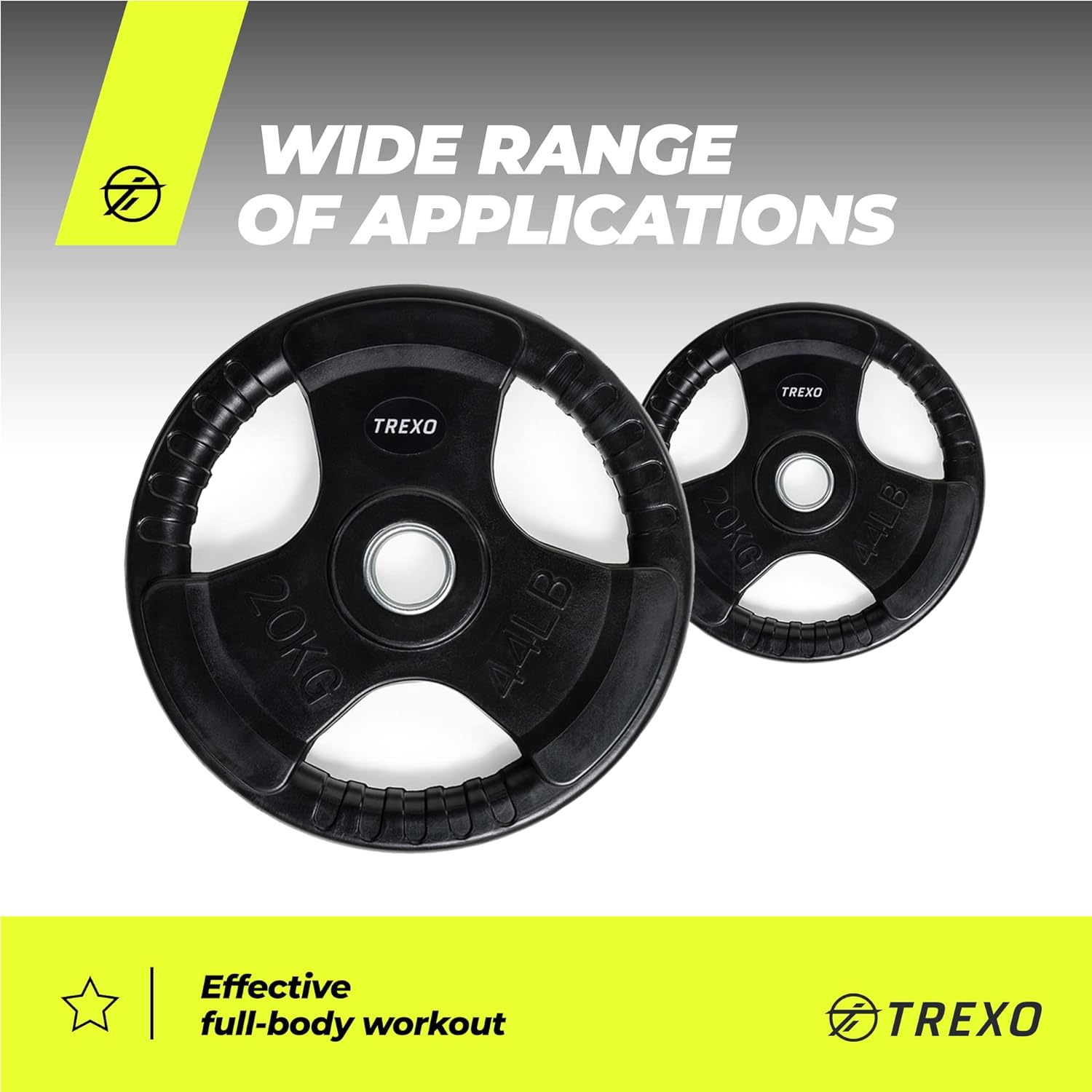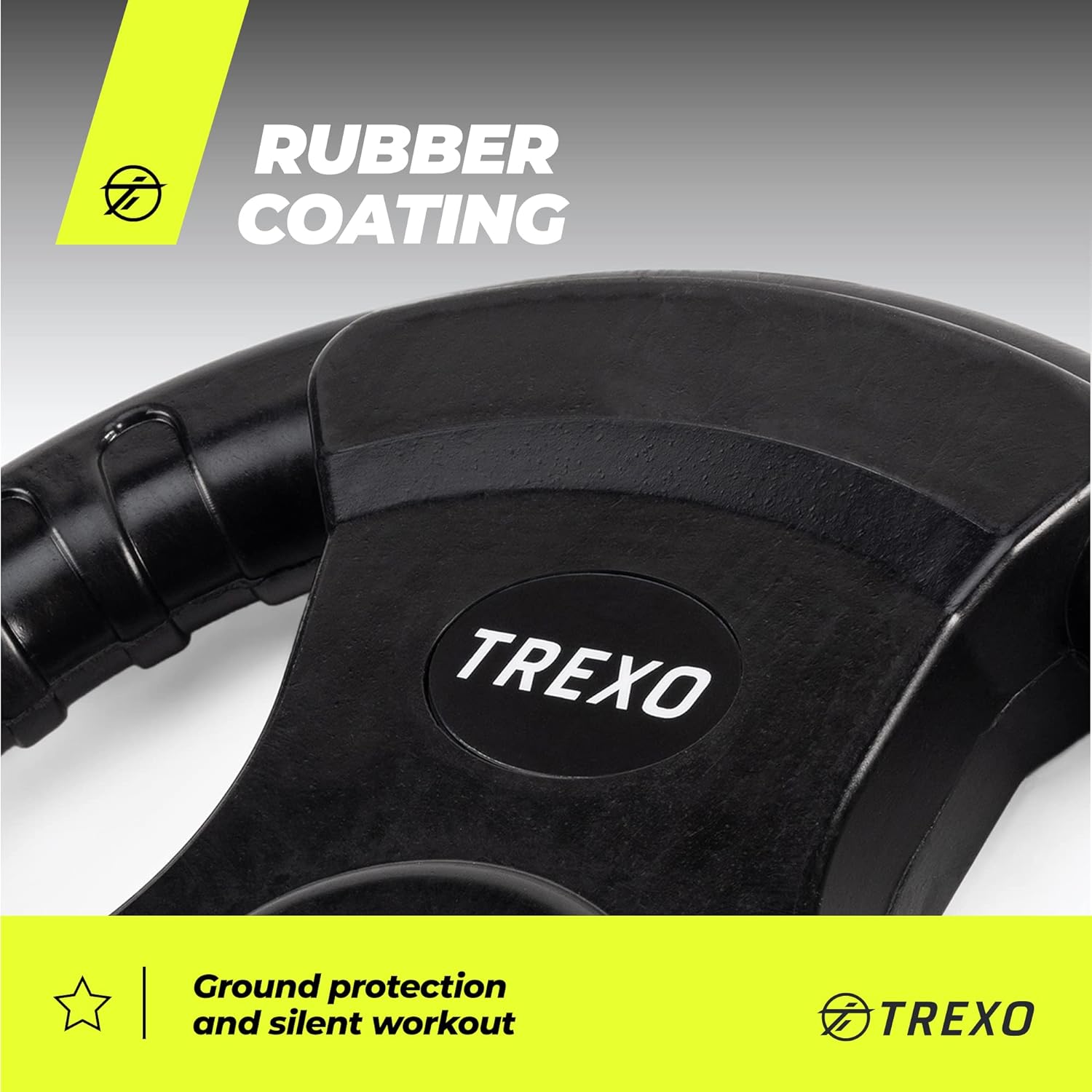 - FÜR ALLE: Scheiben sind ein beliebtes Gerät für professionelle Fitnessclubs, aber TREXO-Scheiben funktionieren auch gut in der Privatsphäre Ihres eigenen Zuhauses. Dank der hohen Verarbeitungsqualität und der breiten Trainingsmöglichkeiten ist