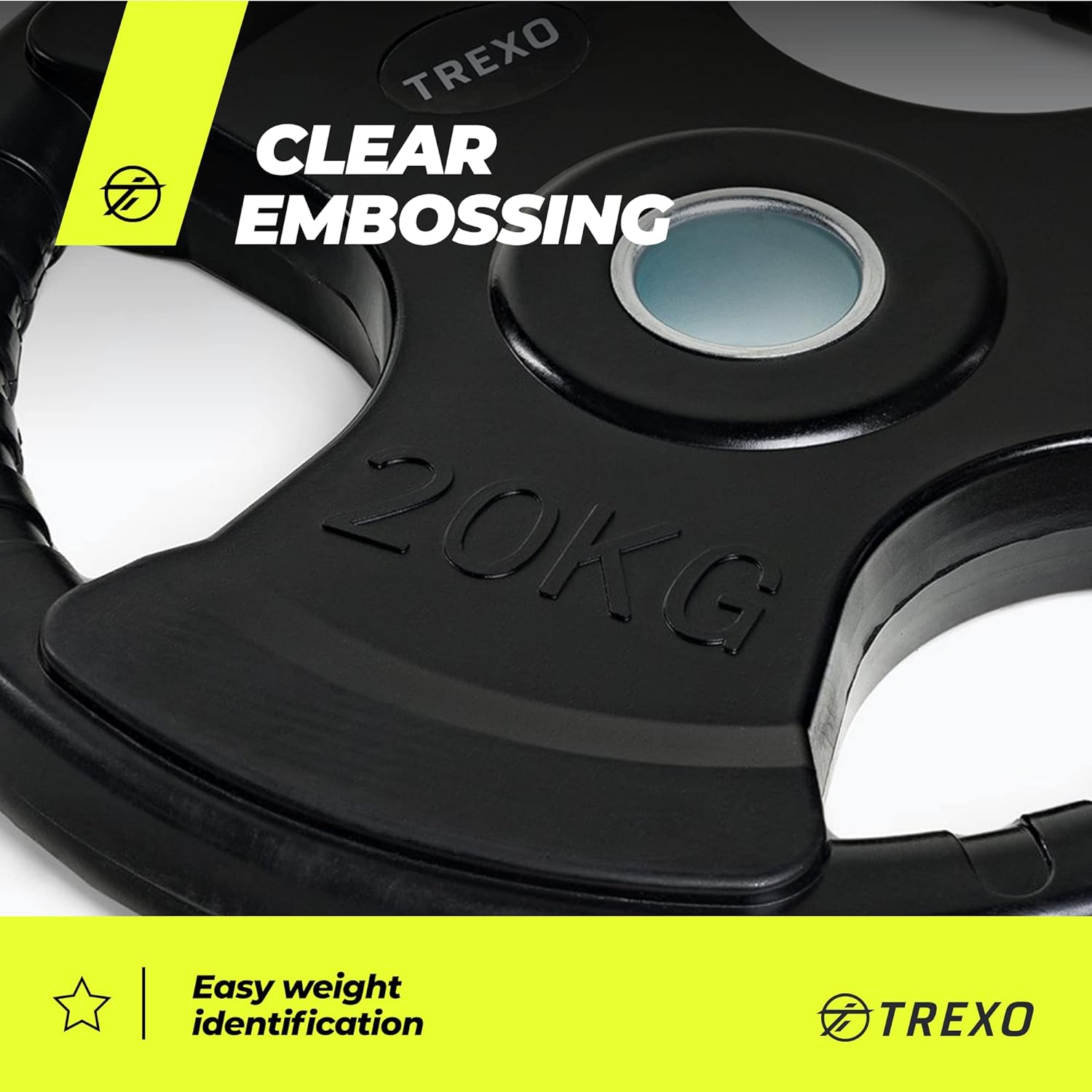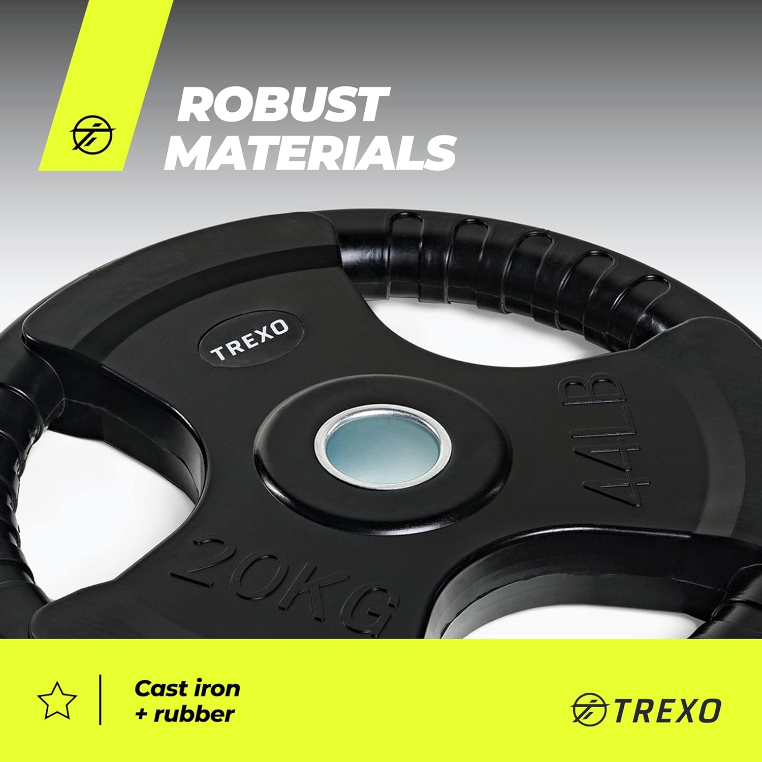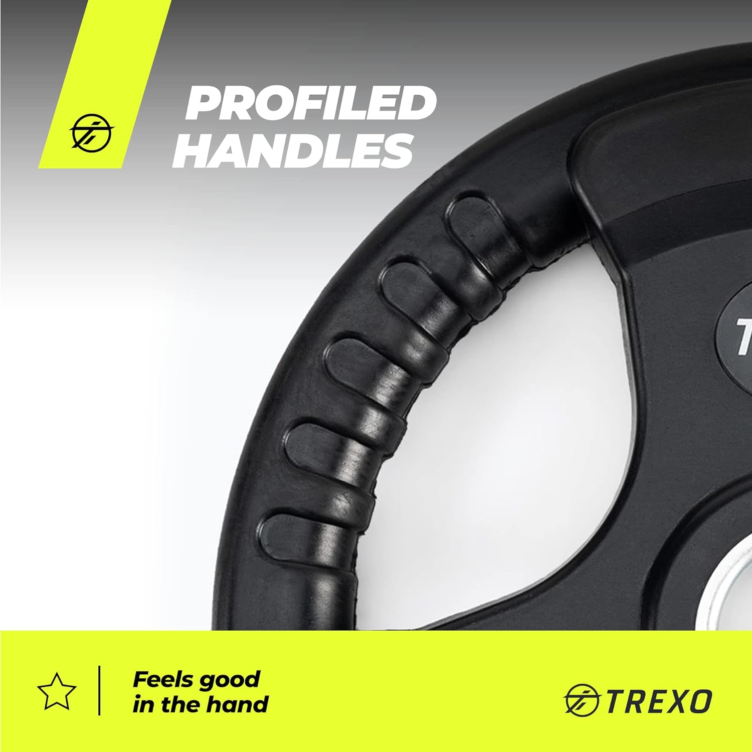 - FÜR ALLE: Scheiben sind ein beliebtes Gerät für professionelle Fitnessclubs, aber TREXO-Scheiben funktionieren auch gut in der Privatsphäre Ihres eigenen Zuhauses. Dank der hohen Verarbeitungsqualität und der breiten Trainingsmöglichkeiten ist