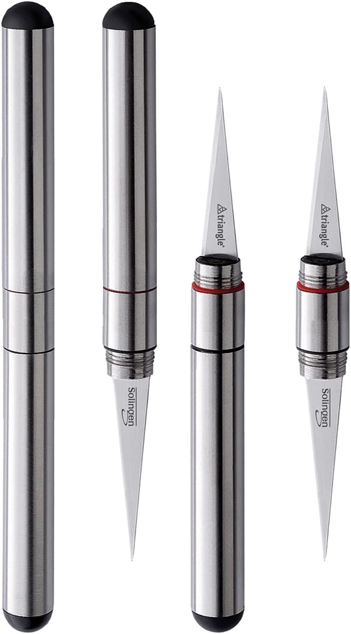 - DETAILS: Schnitzmesser mit 2 verschiedenen Klingen, eine steif, die andere hochflexibel. Die praktische Stiftform mit zwei Schraubkappen schützt beide Klingen