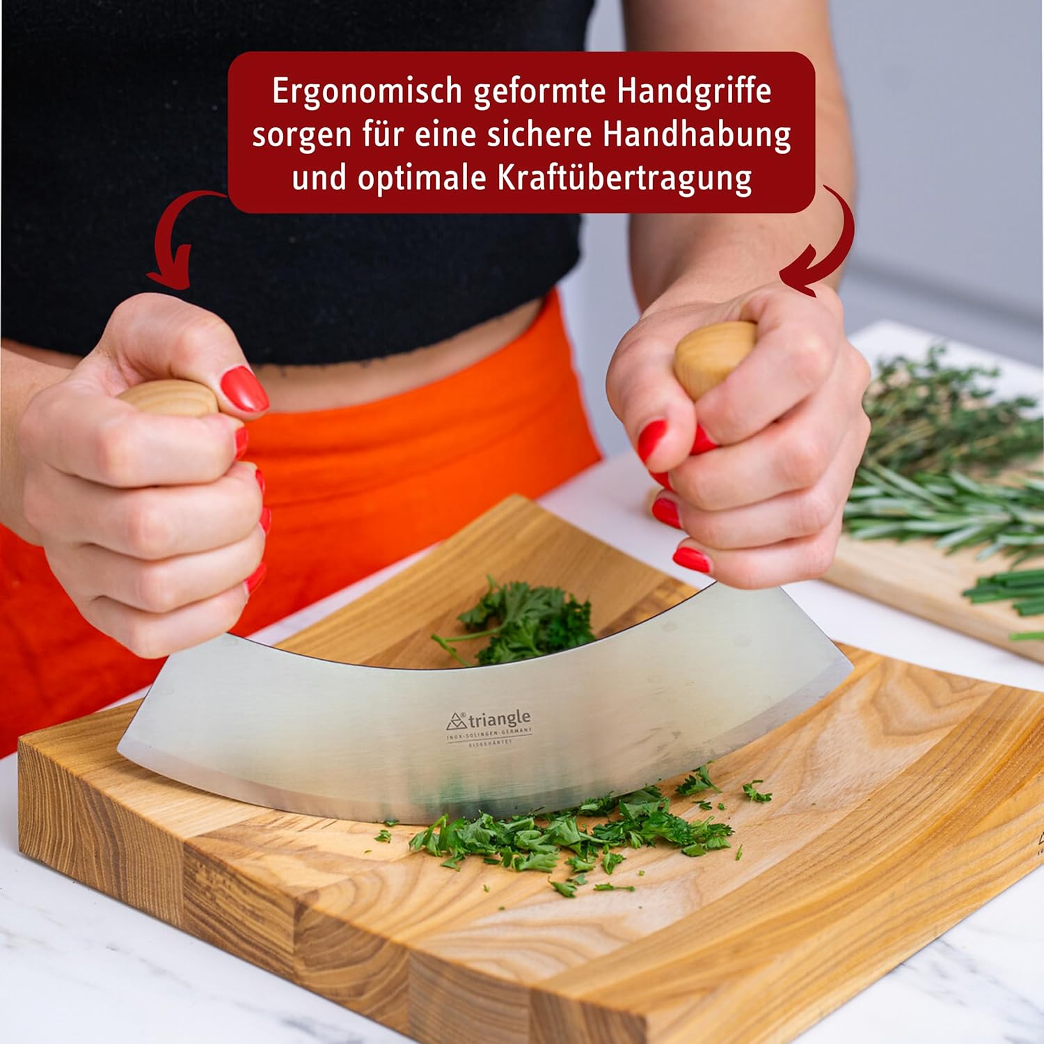 - ZUM Hacken und Zerkleinern von Nüssen, Kräutern, Zwiebeln, Knoblauchzehen, ... und zum Teilen von Pizza und Flammkuchen