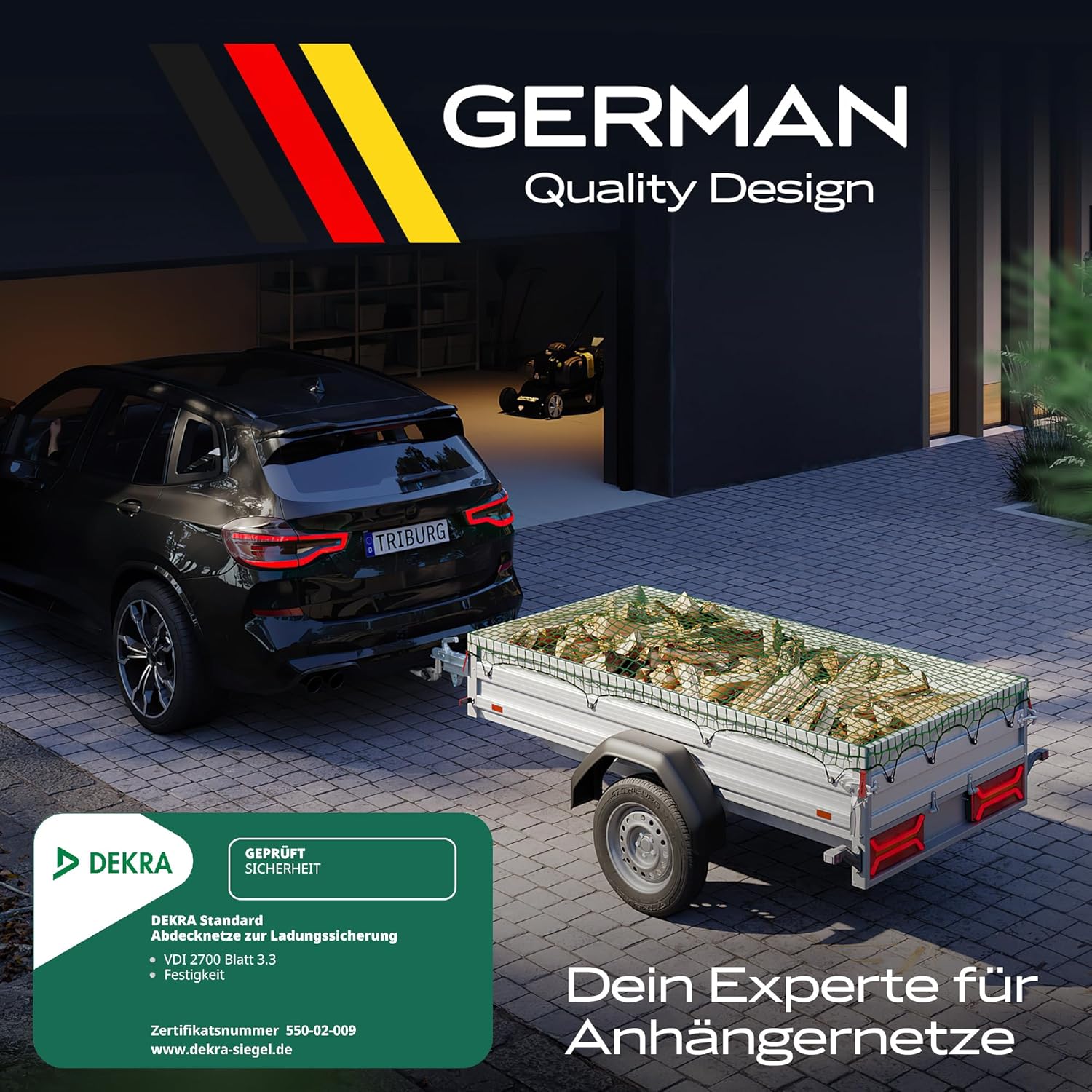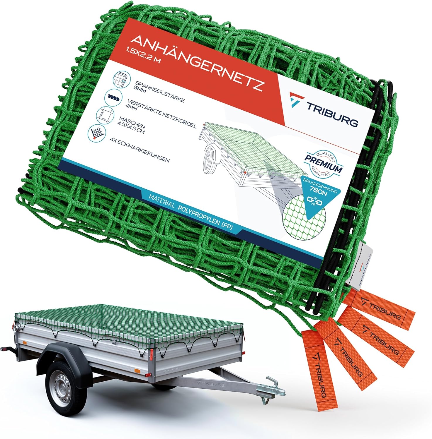 - 𝗢𝗣𝗧𝗜𝗠𝗜𝗘𝗥𝗧 - Eckmarkierungen kennzeichnen die Ecken des Netzes. So ist das Netz in kurzer Zeit angebracht und sichert die Ladung. TRIBURG Original Qualität!