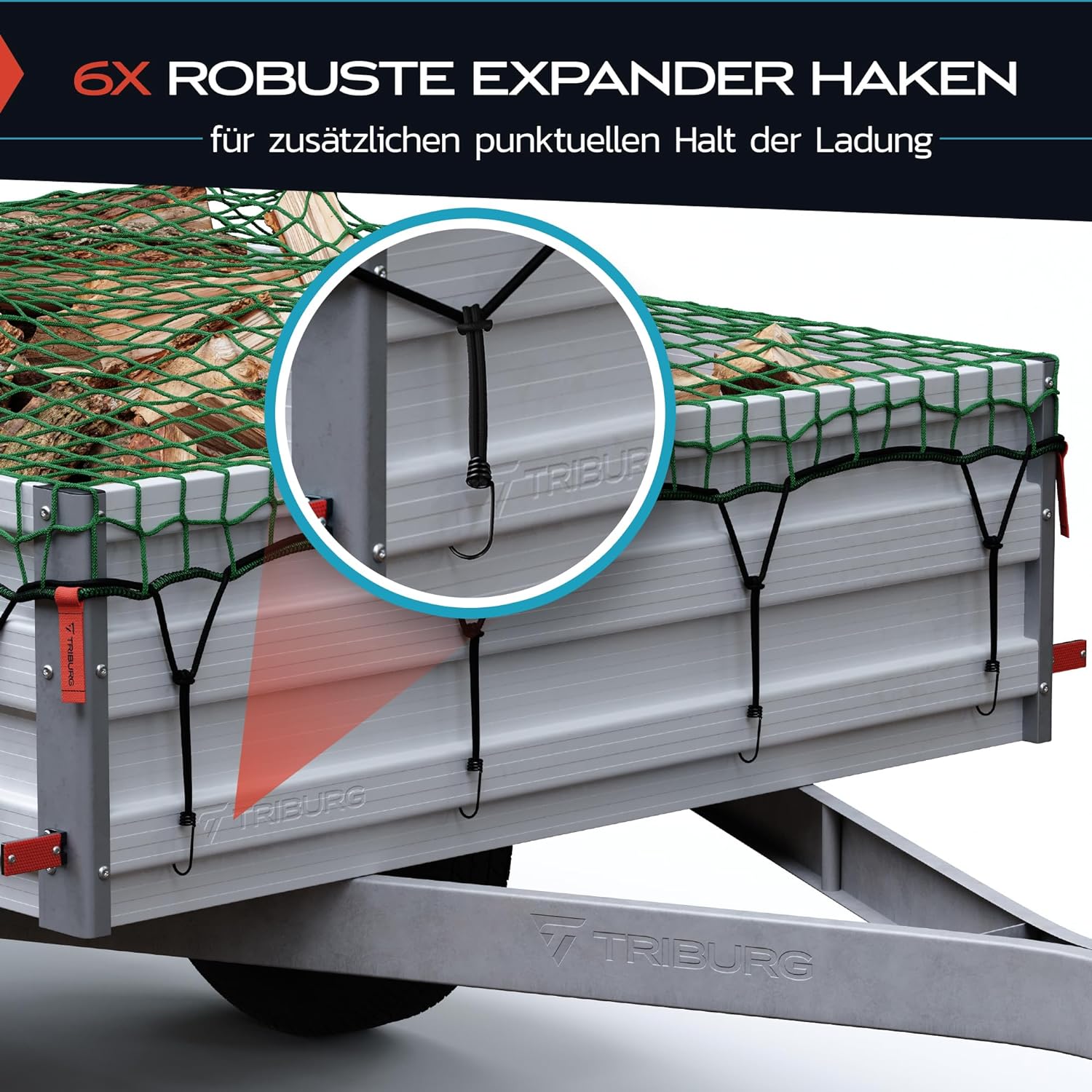 - 𝗢𝗣𝗧𝗜𝗠𝗜𝗘𝗥𝗧 - Eckmarkierungen kennzeichnen die Ecken des Netzes. So ist das Netz in kurzer Zeit angebracht und sichert die Ladung. TRIBURG Original Qualität!