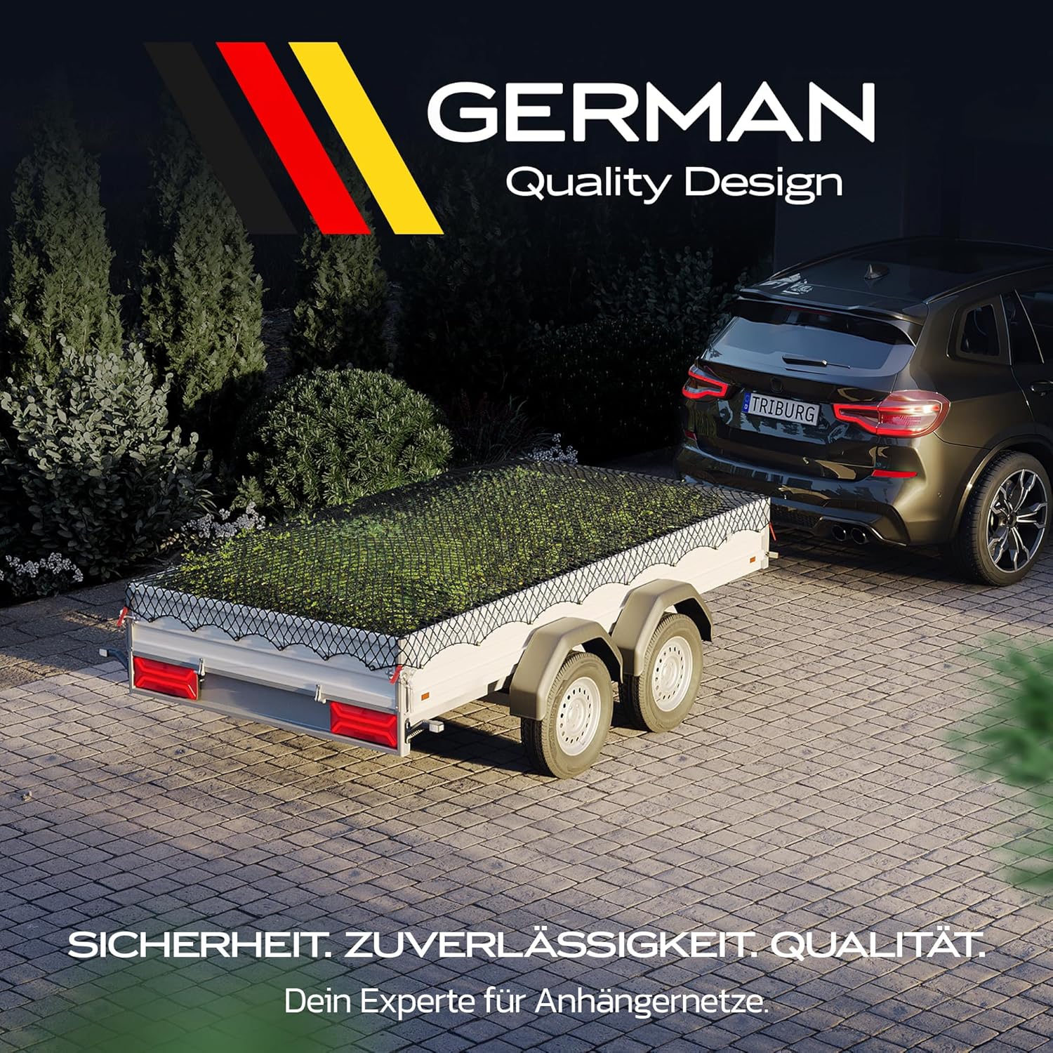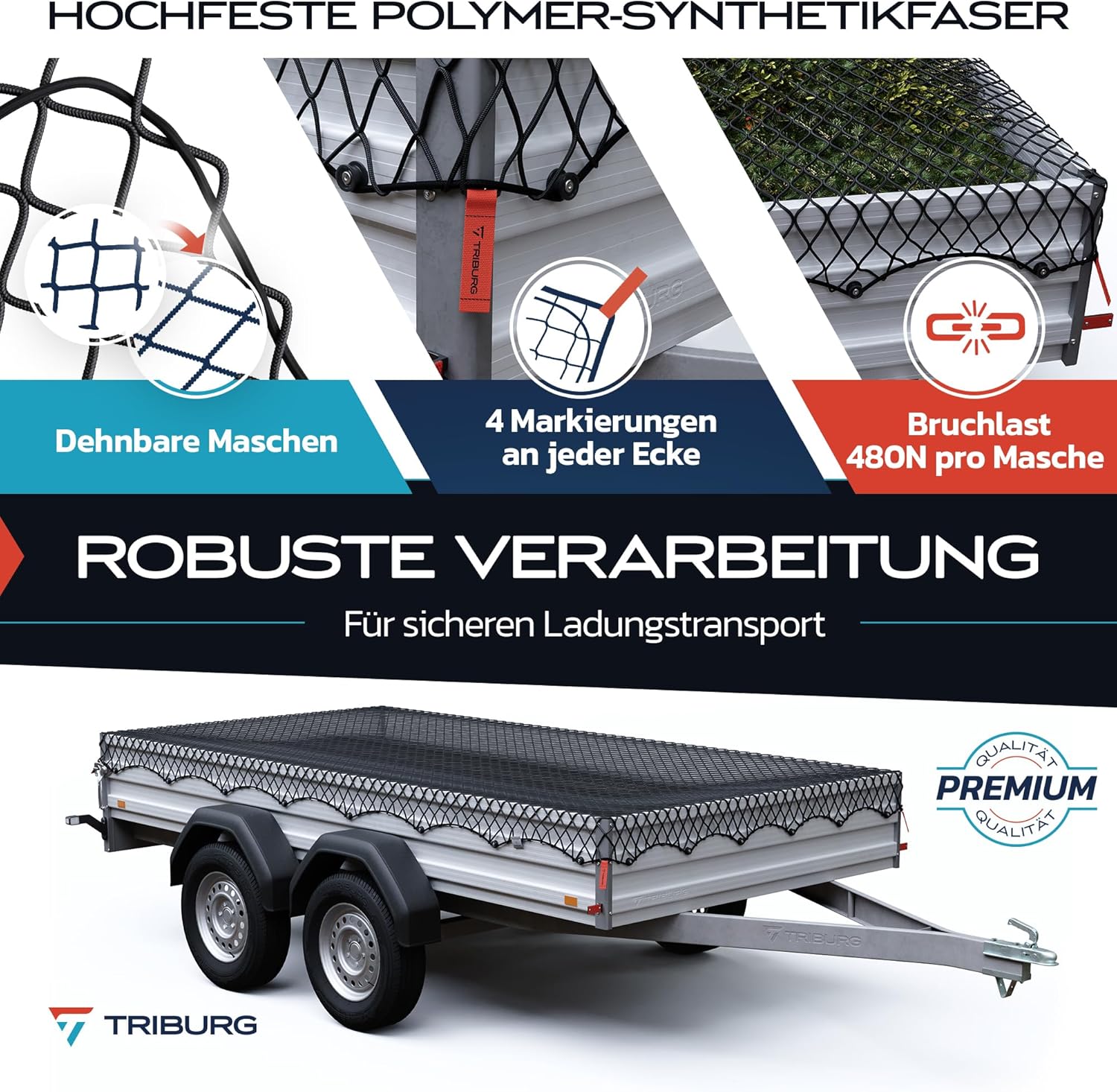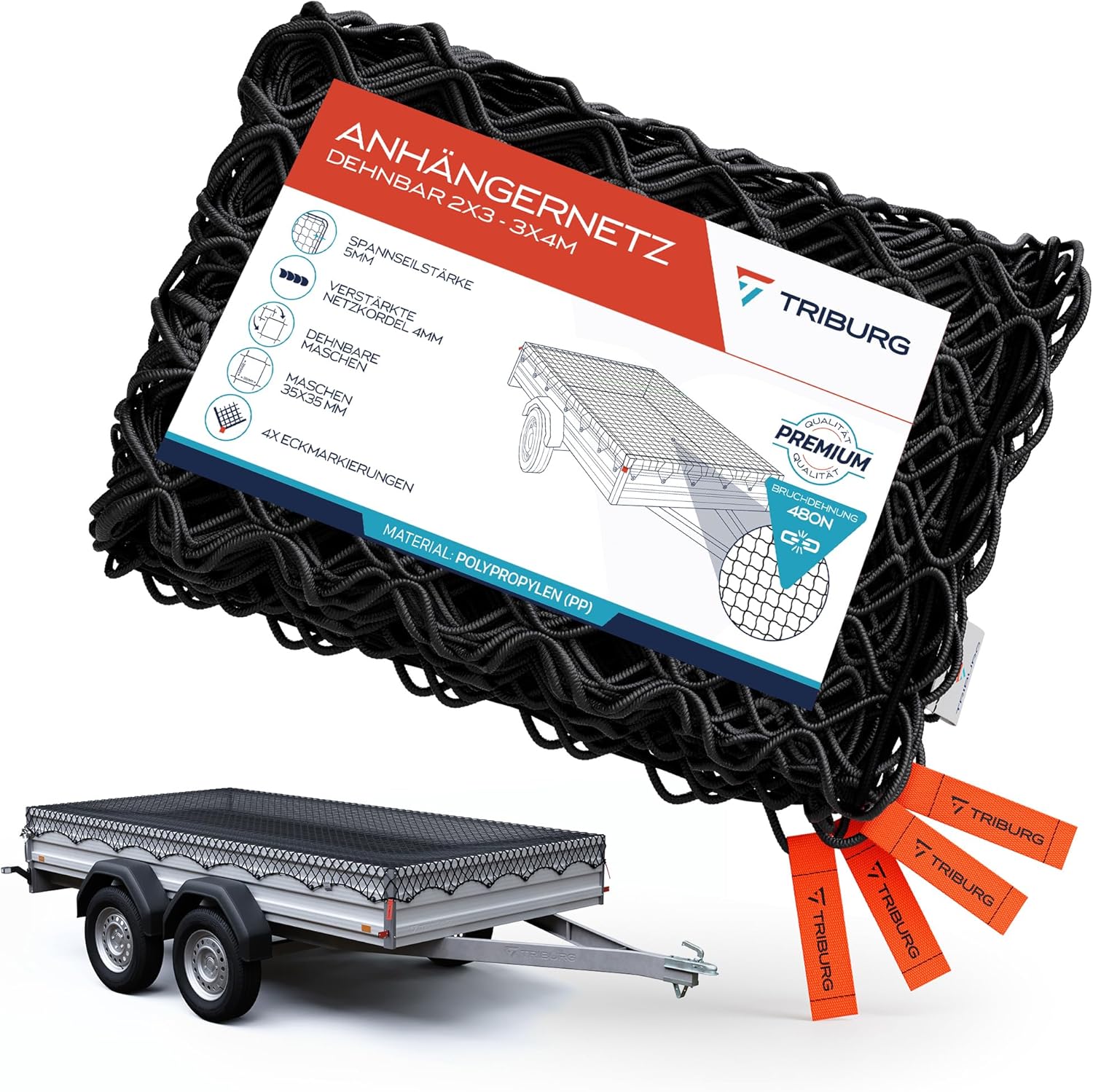 - OPTIMIERT - Verstärkte Netz-Kordel von 3 mm auf 4 mm und reduzierte Maschenweite auf 4 cm. Dadurch eignet sich das Transportnetz auch für grössere Anhänger bis 3x4m. Schutz in TRIBURG Qualität