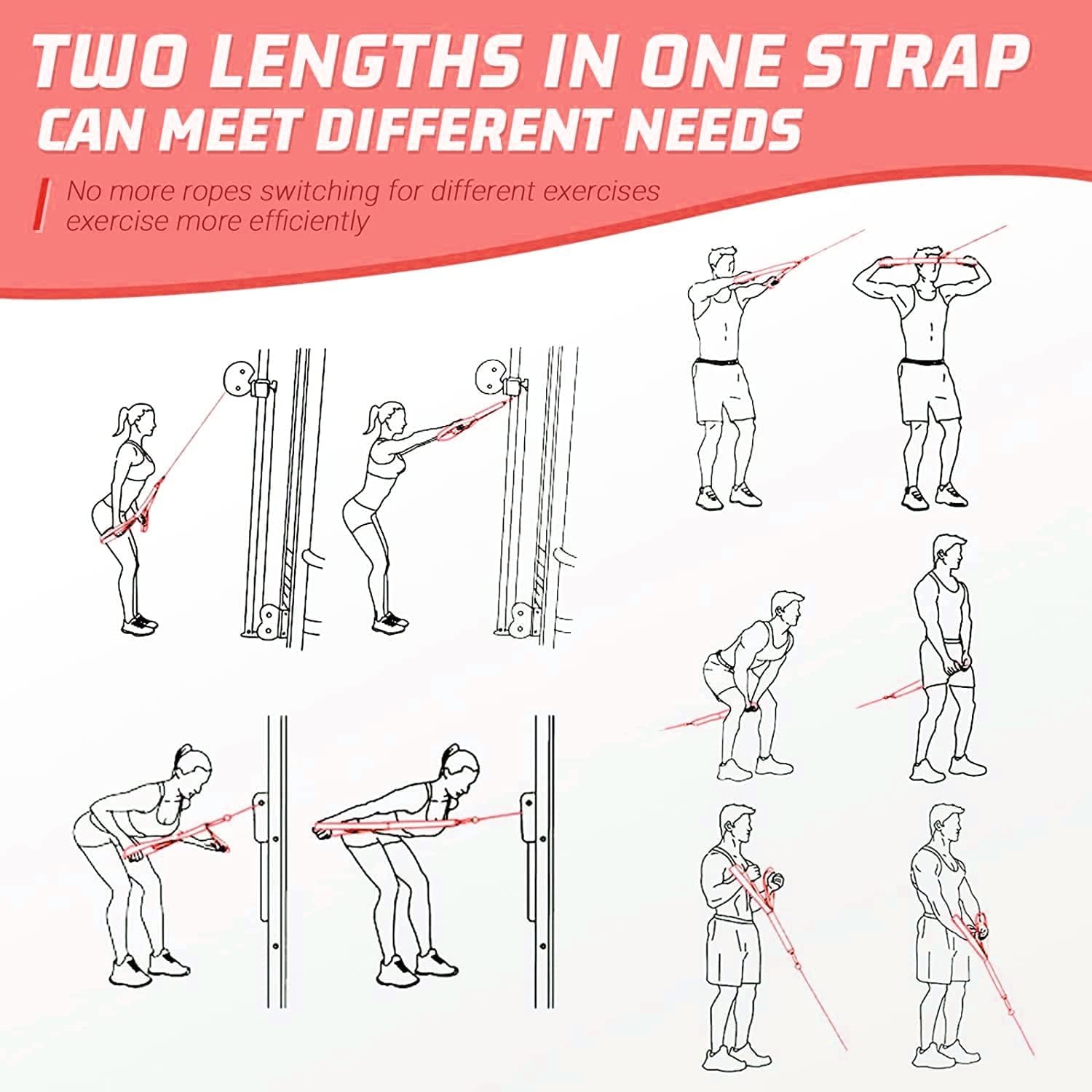 - Alle Längen in einem: Wir haben alle Längen aller traditionellen Trizepsseile auf dem Markt in einem Taview-Trizepsseil entworfen, das nach Belieben im Längenbereich von 33 cm bis 71,1 cm eingestellt werden kann. Sie können die Länge nach Ihren