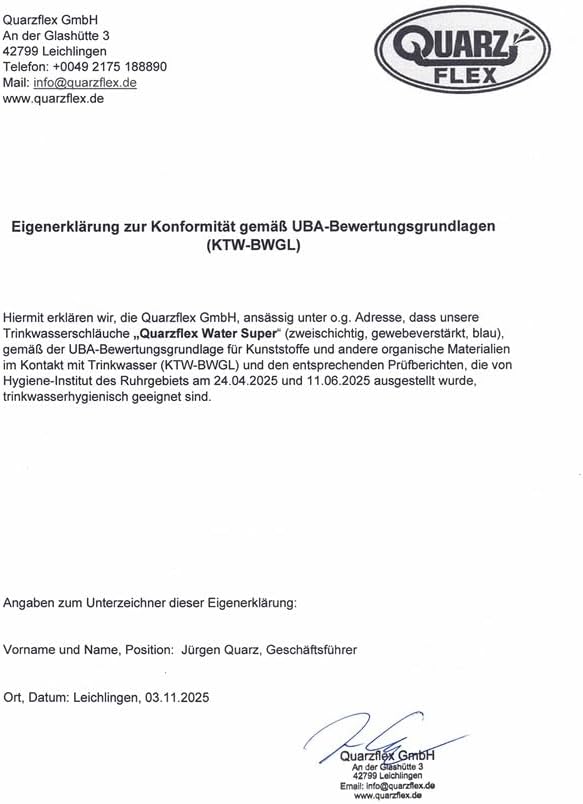 - Quarzflex Trinkwasserschlauch 13 mm (1/2") 25m Rolle, komplett montiert mit GEKA Plus Trinkwasser Kupplungen